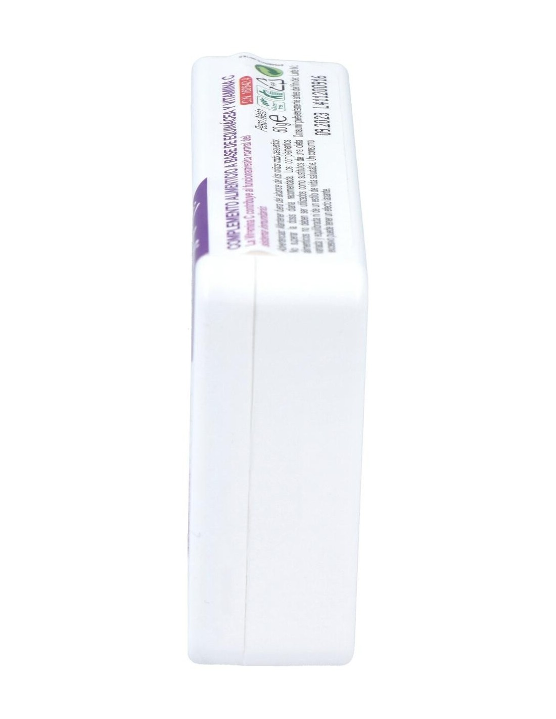 Ingredientes:Espesante: goma arábiga; edulcorantes: sorbitol, jarabe de maltitol, glucósidos de steviol; agua depurada; acidulante: ácido cítrico; Equinácea (Echinacea purpurea Moench) planta e.s. D/E 45:1 (1,07%); ácido L-ascórbico (Vit. C); aroma; agentes de revestimiento: aceite de coco y cera carnauba; Saúco (Sambucus nigra L.) frutos extr. conc.Modo de empleo:Se aconseja la toma de 2 a 4 pastillas al día. Dejar deshacer en la boca lentamente.Presentación:Envase de 50 gramos sabor cereza.Recomendaciones y advertencias:Apto para vegetarianos y veganos. No contiene guten, derivados lácteos, lactosa, azúcar añadido, conservantes añadidos, colorantes artificiales.