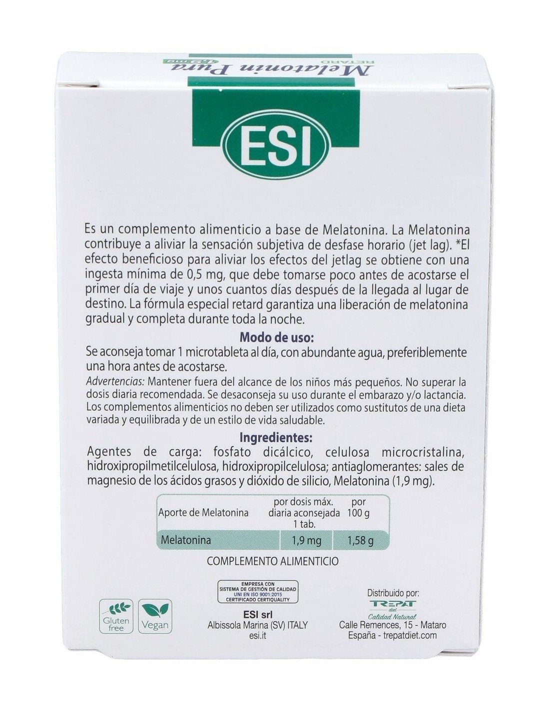 Melatonin Retard Pura 1,9Mg. 60Microtabletas de Trepatdiet-Esi