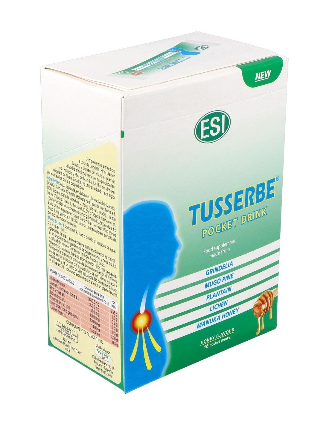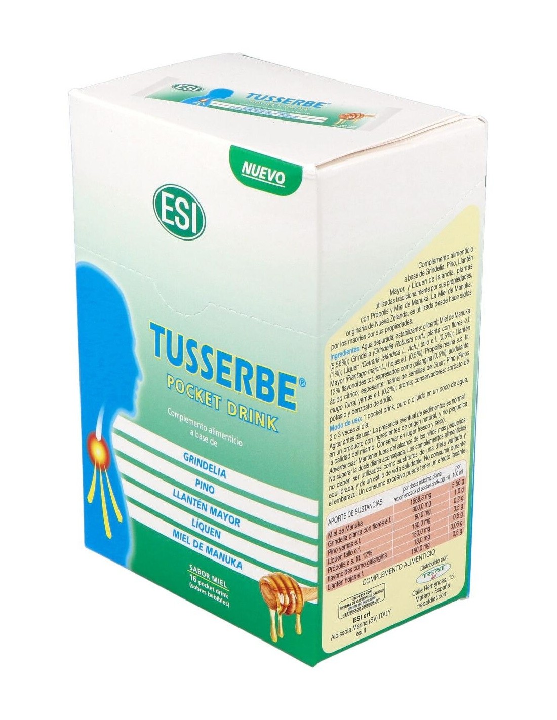 Tusserbe Pocket Drink 16Sbrs. de Trepatdiet-Esi es un complemento alimenticio para personas que buscan apoyo en su bienestar diario, formulado para facilitar su consumo gracias a su presentación en sobres individuales.