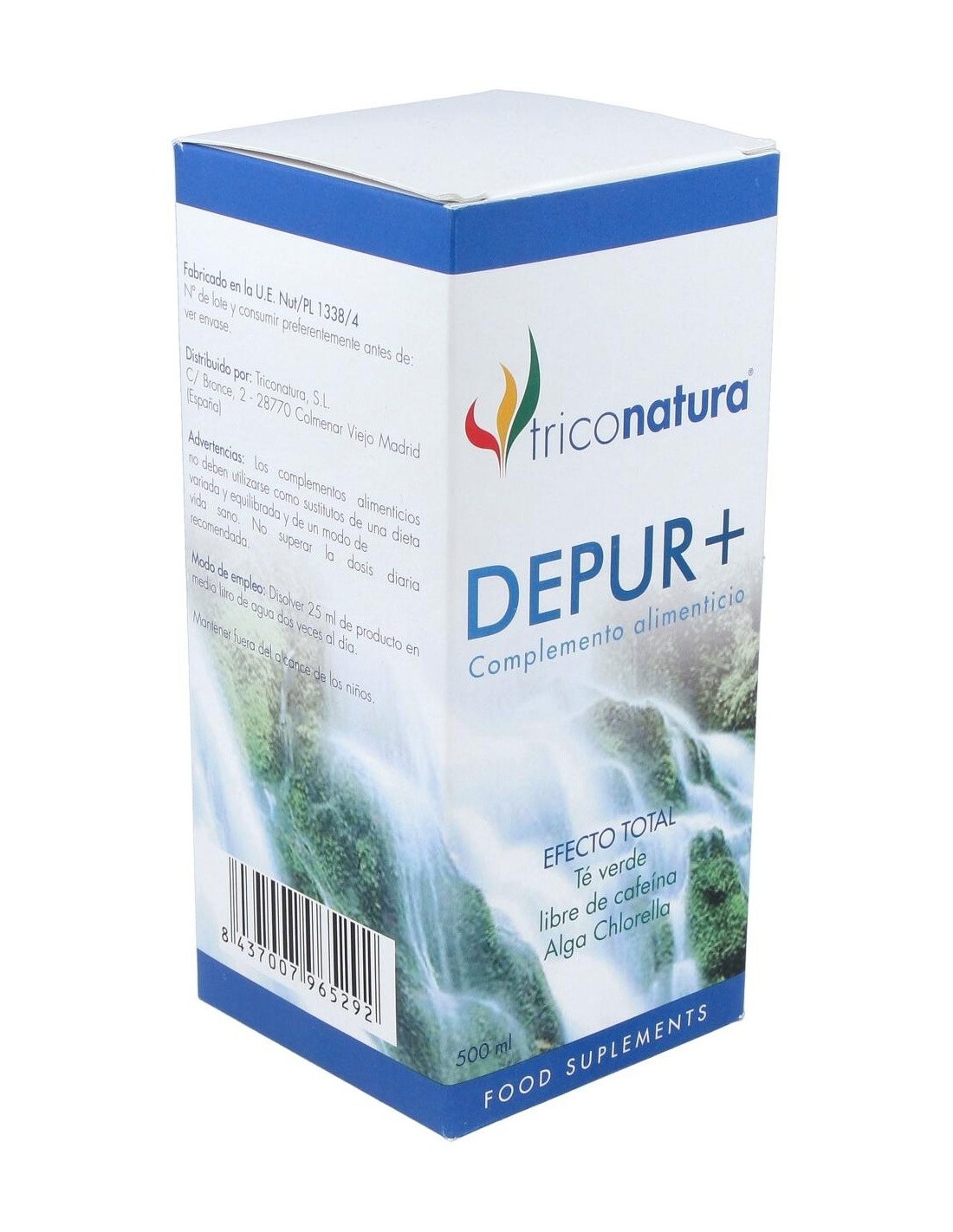 Trico Depur+ es un depurativo drenador que actúa sobre todos los órganos de eliminación (hígado, riñón, intestino, pulmón y piel), con ligera acción inmunomoduladora, favoreciendo el drenaje linfático y circulatorio con aporte enzimático, vitamínico y mineral. Una depuración proporcionará durante 15 o 20 días liberar bloqueos tóxicos en órganos y acúmulos grasos. Útil en los siguientes casos: