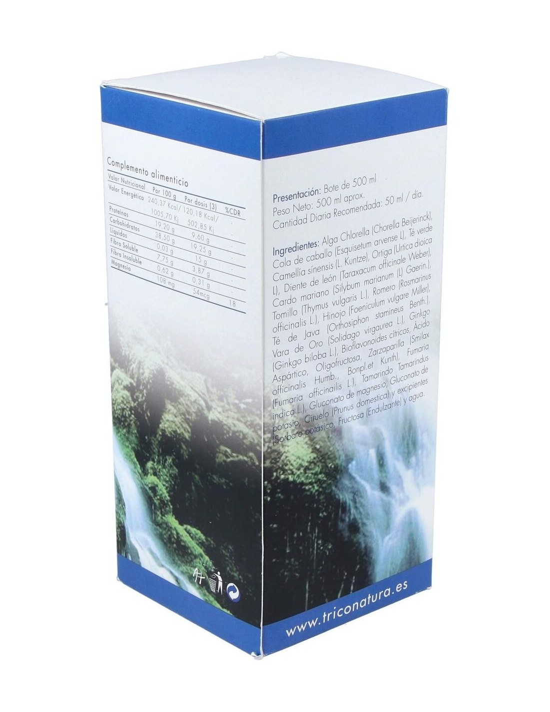 Trico Depur+ es un depurativo drenador que actúa sobre todos los órganos de eliminación (hígado, riñón, intestino, pulmón y piel), con ligera acción i