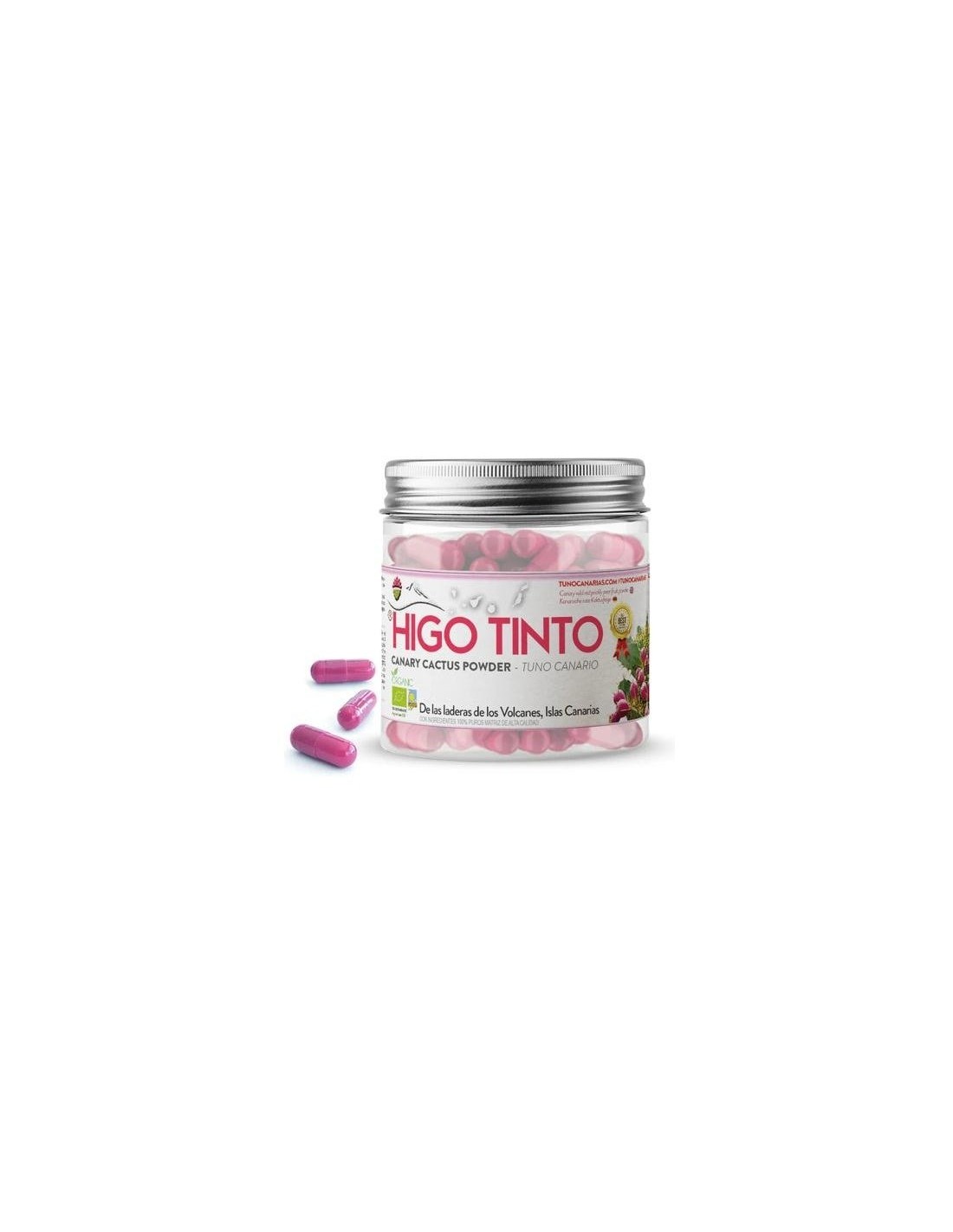 El Higo Tuno Canario HIGO-TINTO (Opuntia Dillenii) se cosecha en los barrancos y laderas bajo los volcanes. Crece en las hojas de los cactus Nopales traídos a Canarias hace siglos desde América donde ha sido un alimento básico durante miles de años. Un tesoro escondido de las Islas Rico en Fibra, Vitaminas B1, B2, B6, C, Potasio, Calcio, Magnesio Hierro y Zinc que ha sido usado en la medicina popular canaria y los pueblos indígenas americanos durante cientos de años.