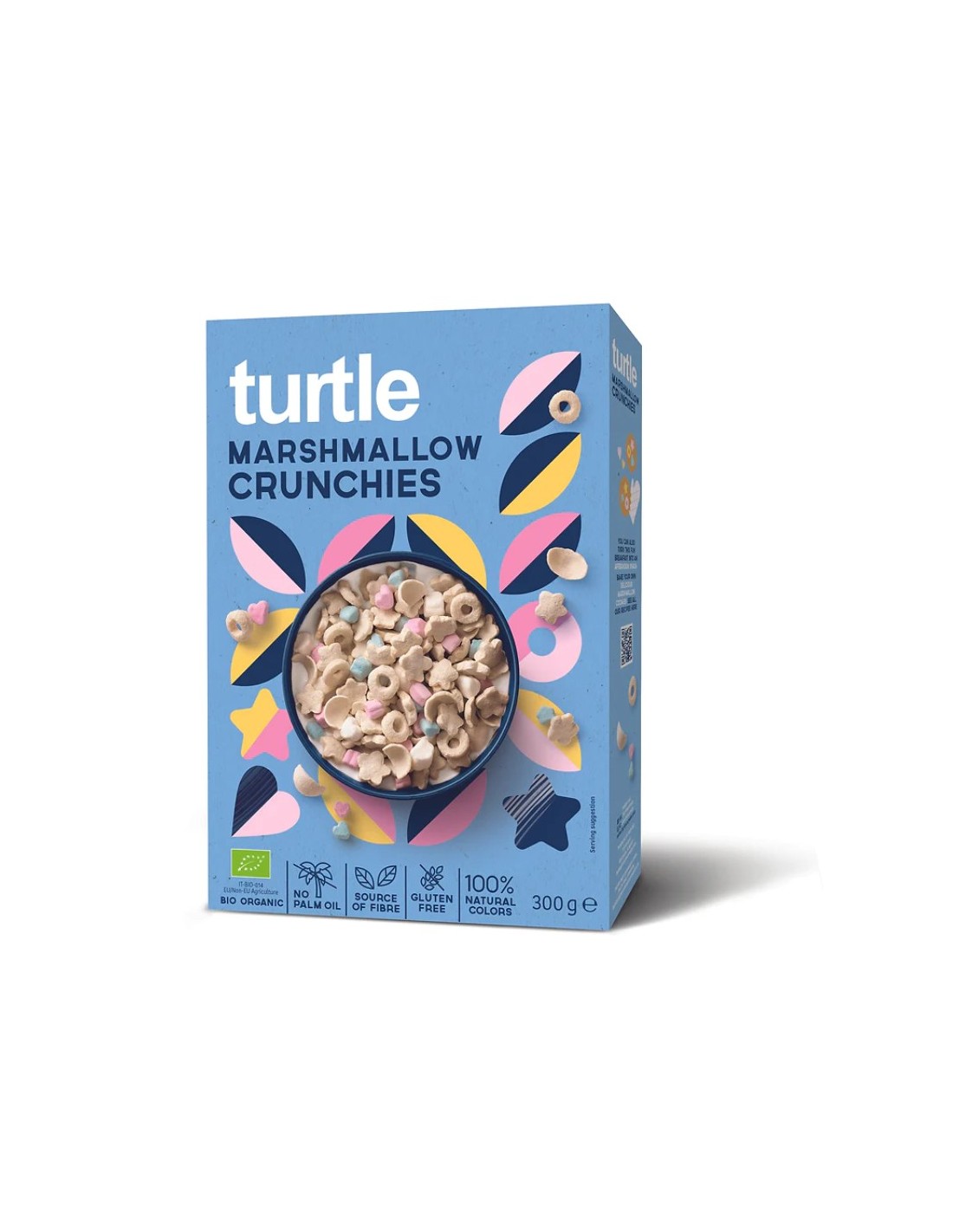 Empiece el día de forma mágica con nuestros crujientes de marshmallow Turtle sin gluten. ¡Cereales de avena crujientes con sabor a vainilla, combinado