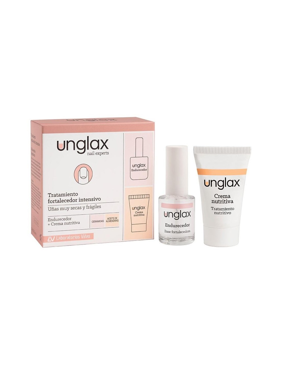 UNGLAX | Unglax tratamiento uñas crema 15ml + endurecedor 10mlLa manicura no solo consiste en perfilar y recortar las uñas a nuestro gusto, sino también en nutrir su estructura interna para que luzcan siempre bellas y con un aspecto saludable.Unglax Tratamiento Fortalecedor Intensivo es un kit de cuidado completo para tus uñas.