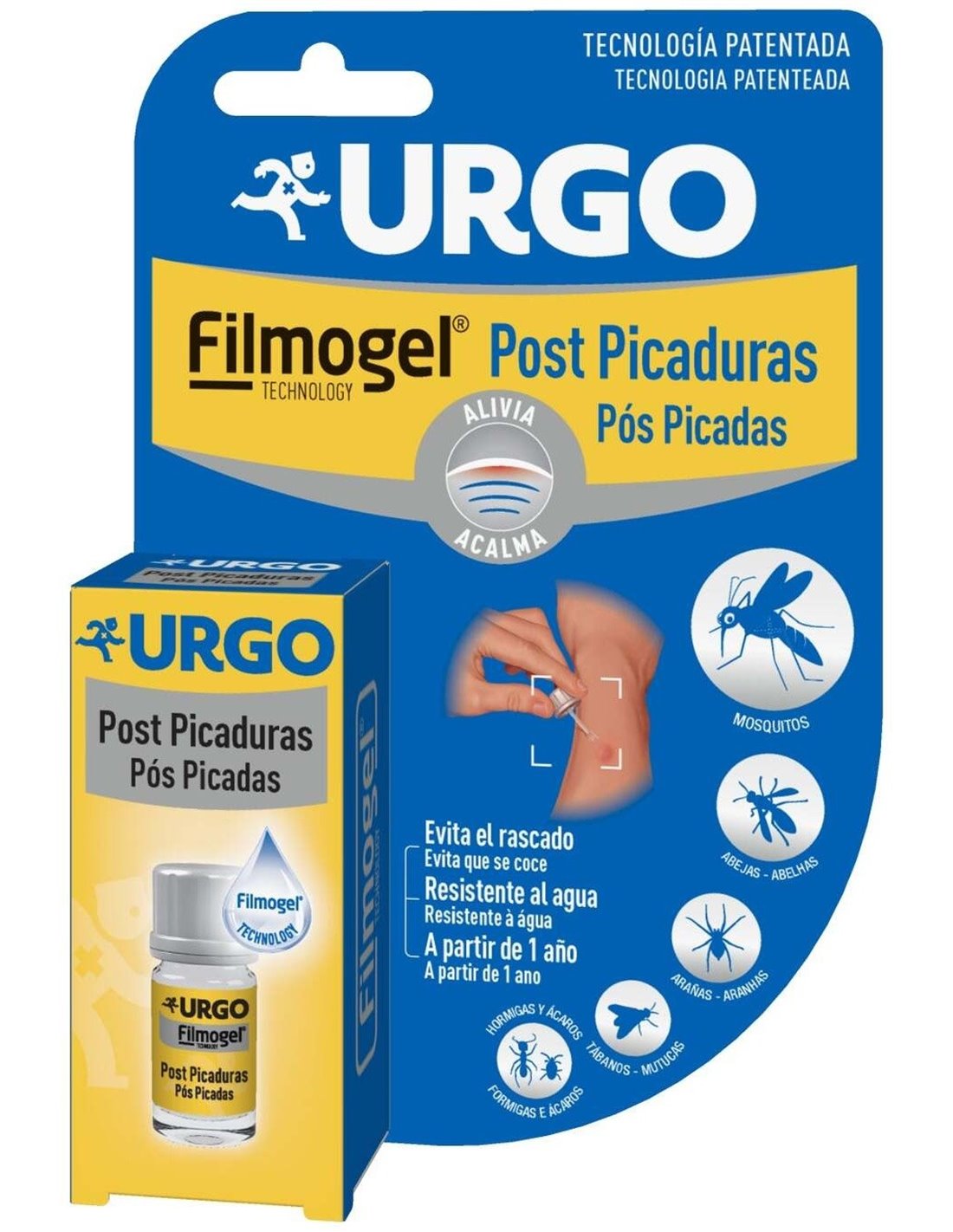 Combina propiedades filmógenas protectoras y calmantes en una fórmula innovadora. Una vez aplicado, el producto se transforma en una película transparente flexible que también es resistente al agua. Una vez formada la película, protege, calma el picor y previene el rascado de la picadura. Indicado en caso de picaduras de insectos como mosquitos, avispas, tábanos, arañas, niguas, abejas y hormigas.