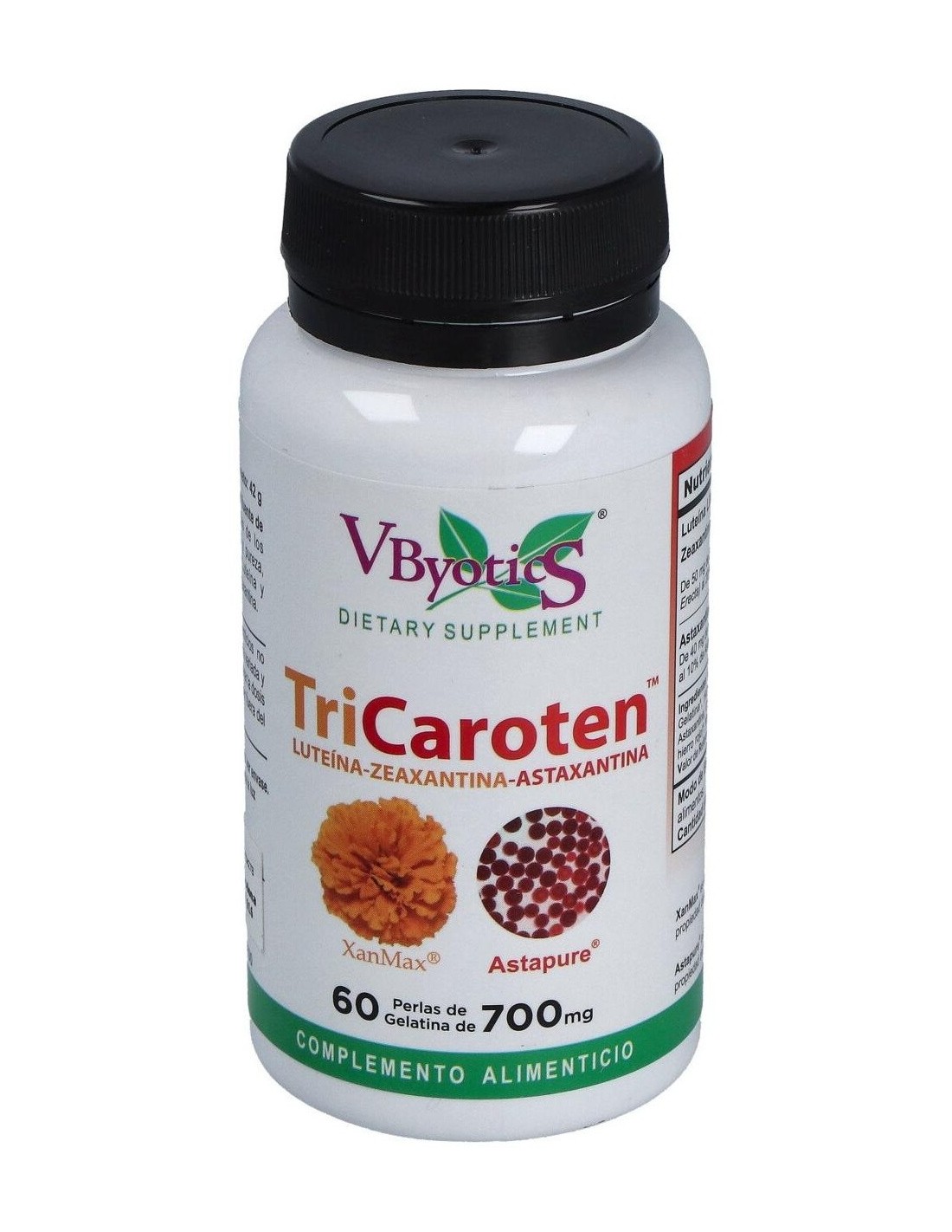 Tricaroten 60Perlas de Vbyotics es un suplemento diseñado para personas interesadas en complementar su dieta con nutrientes que contribuyen al bienestar general. Su formulación en perlas facilita la dosificación y el consumo diario.