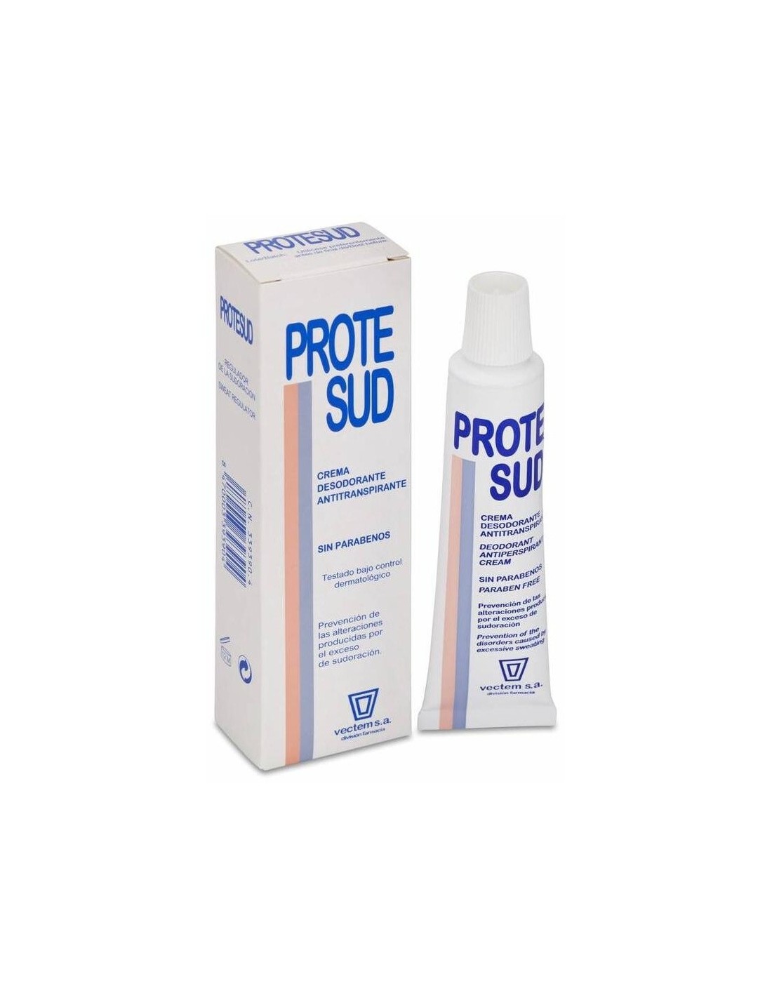 Crema reguladora de la sudoración y desodorante para la prevención del mal olor y de las alteraciones producidas por la sudoración excesiva en pies, axilas y pliegues de la piel. Compatibilidad cutánea testada bajo control dermatológico. La crema Protesud® combina ingredientes que combaten la hiperhidrosis y la bromhidrosis actuando a tres niveles:\ Disminuyen la sudoración, reduciendo sus molestias y las alteraciones de la piel.\ Absorben la humedad local.\ Frenan la fermentación del sudor, limitando así la generación de mal olor.