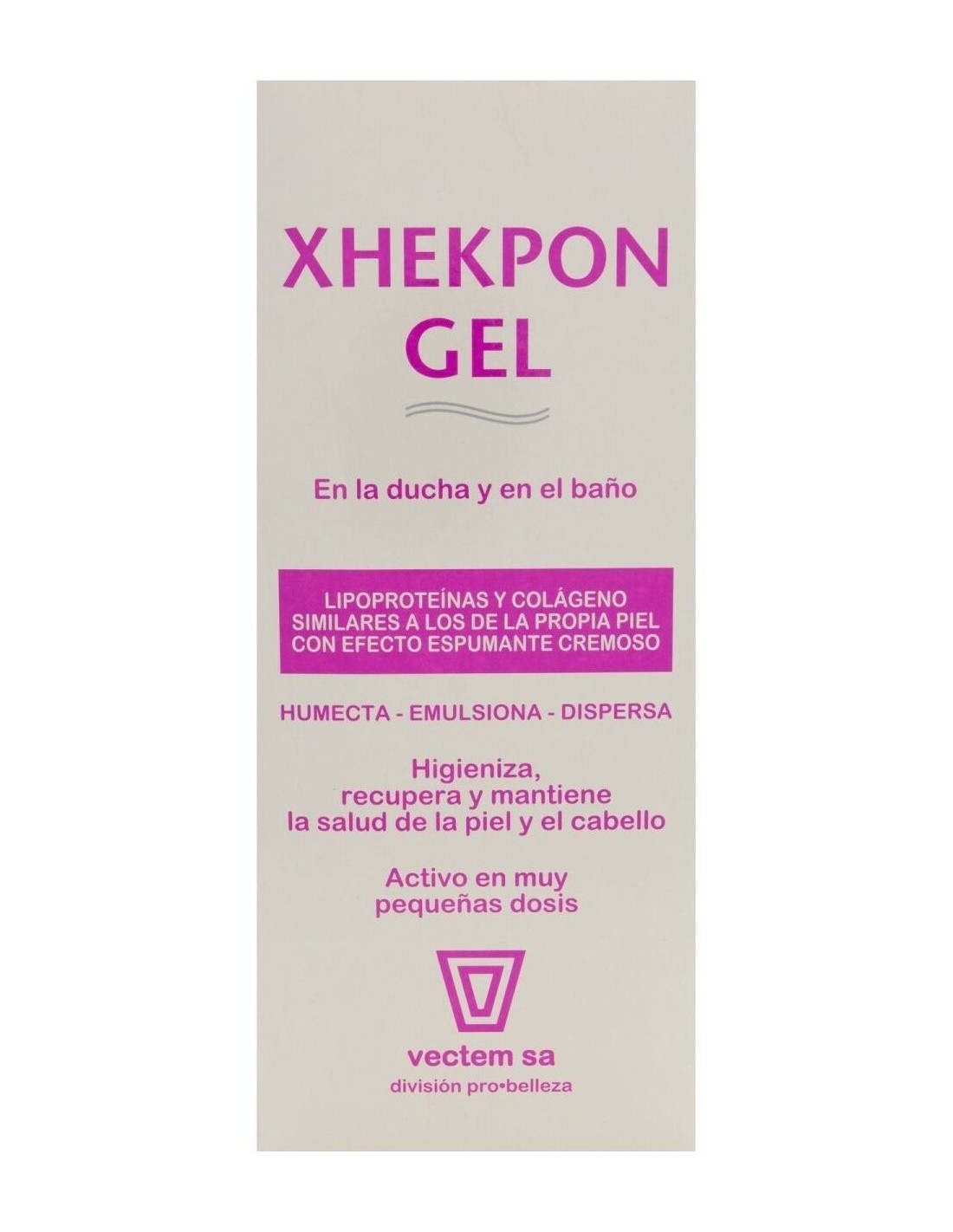 El gel Xhekpon® es un gel de baño y ducha de alta calida dermatológica indicada para la higiene diaria y para suavizar la piel y el cabello.