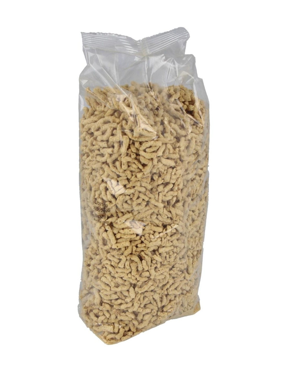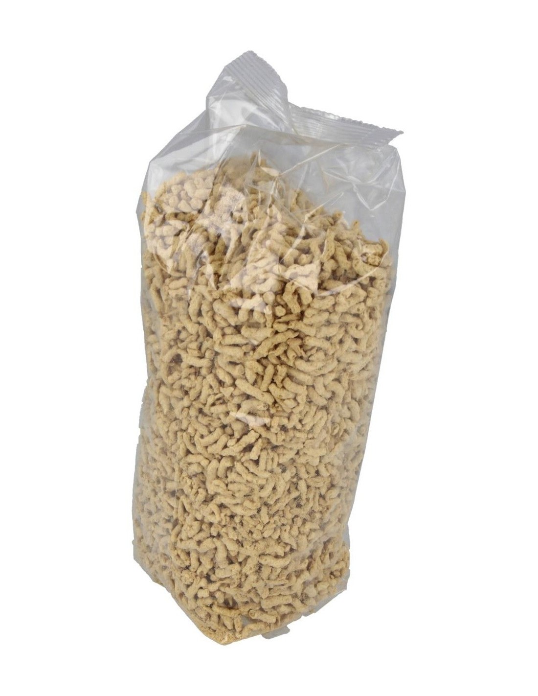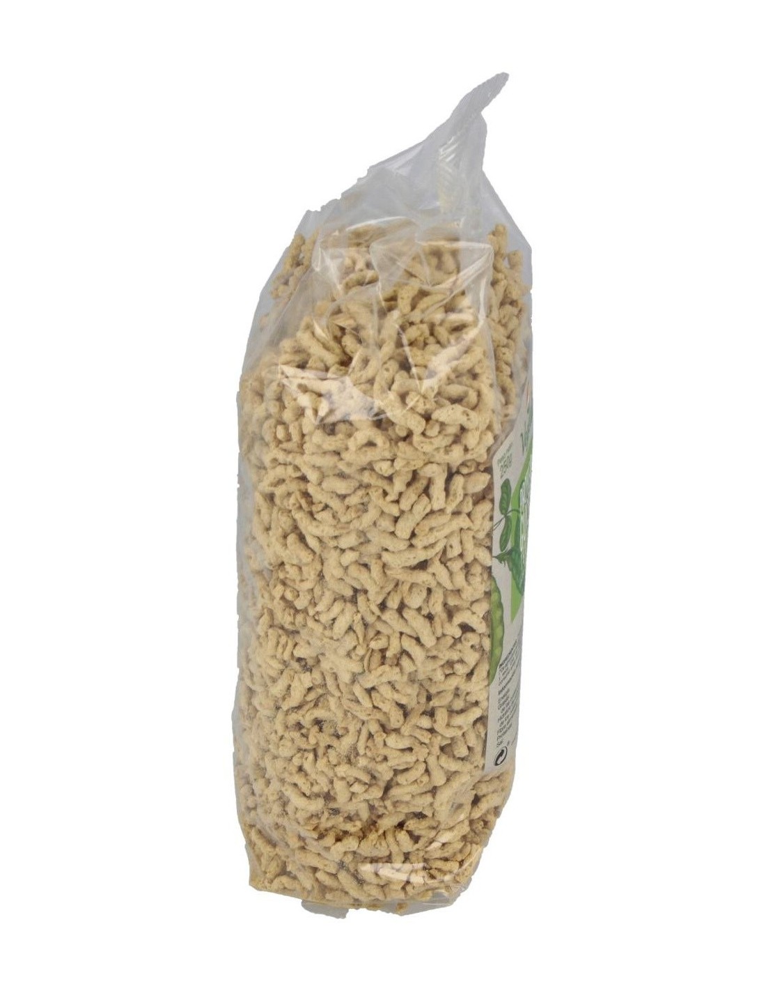 Proteína de guisante texturizada biológica con alto contenido en proteínas y fibras. Elaborado a partir de guisantes procedentes de agricultura ecológica, es un producto recomendado para reemplazar carnes y pescados. Contiene grandes cantidades de arginina, lisina y aminoácidos ramificados. Es una alternativa a la soja texturizada, indicado para aquellas personas que sufren de intolerancia a la soja. Cocinar antes de consumir. Apto veganos.