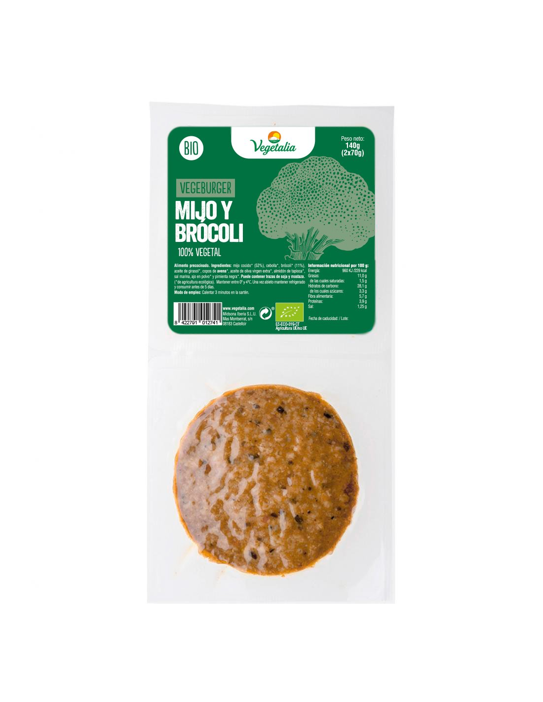 Vegeburger Mijo Y Brócoli Bio, 2X70 G de Vegetalia
