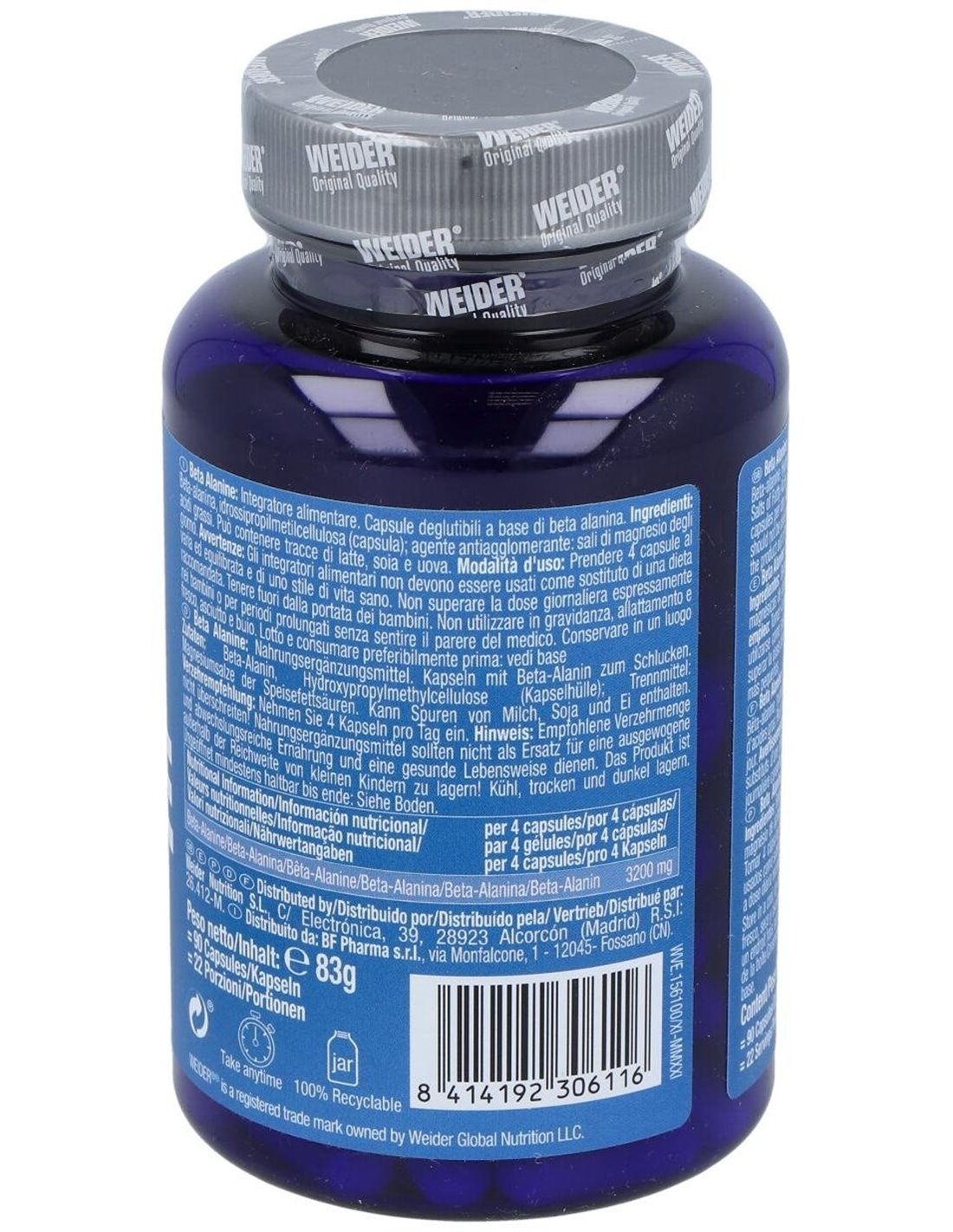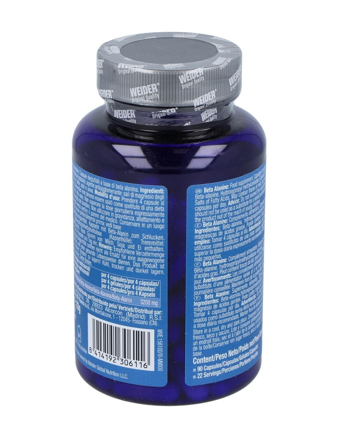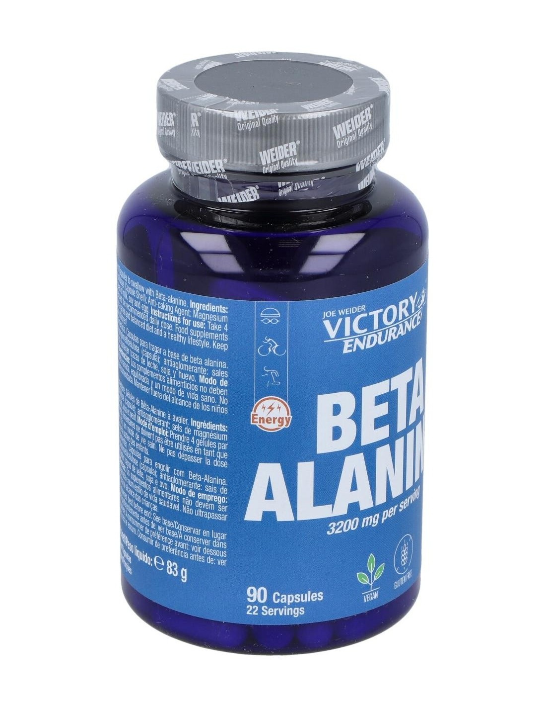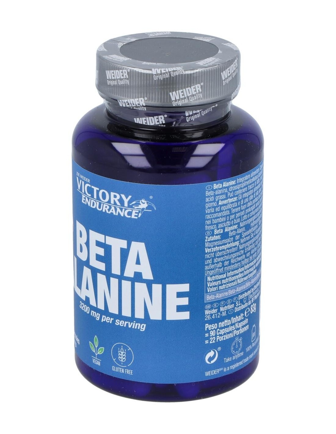 Complemento alimenticio compuesto por Beta-alanina, aminoácido no esencial, único por la especial posición que ocupa el grupo amino, efectivo como suplemento ergogénico, aumentando así la potencia muscular y con marcado efecto antoxidante. La beta-alanina es un aminoácido implicado directamente con el aumento de la carnosina, dipéptido que se encuentra en la musculatura y cerebro, cuya liberación en el organismo se traduce en un aumento de la resistencia, una mejora en la contracción muscular y un retraso de la fatiga. Previene la hiper acidez muscular, inhibiendo la producción de ácido láctico, aumentando así la capacidad de rendimiento. Buen regulador del calcio, induce una rápida liberación del calcio, mejorando la contracción muscular, y aumentando el tiempo de entrenamiento. Reduce el estrés oxidativo, consiguiendo que el rendimiento sea mayor y acelerando la recuperación muscular.
