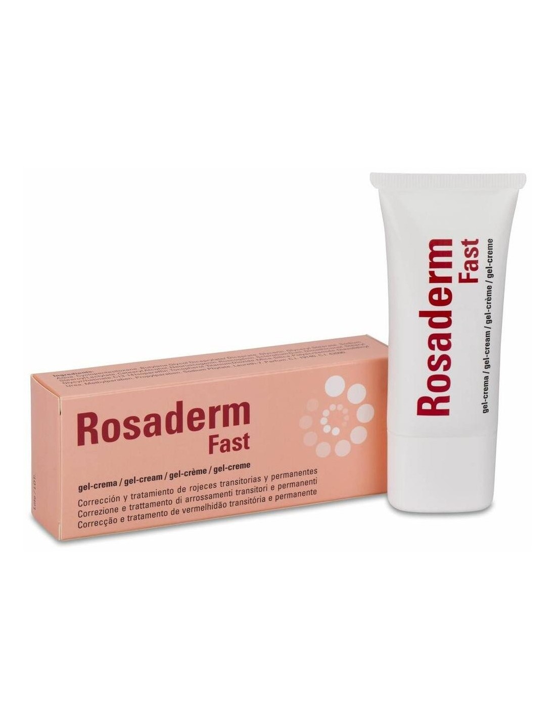 Rosaderm Fast es un gel-crema facial hipoalergénico y refrescante de excelente tolerancia y óptima textura con una acción rápida frente a las rojeces transitorias y permanentes (cuperosis). Rosaderm Fast está especialmente formulado con activos que ayudan a tratar, proteger y corregir, de forma inmediata, los cutis más sensibles y delicados. Rosaderm fast ejerce un aumento de la resistencia de los capilares sanguíneos al mismo tiempo que favorece la descongestión facial y corrige la rojez cutánea.\ Calma, protege, corrige e hidrata las pieles más sensibles favoreciendo un alivio inmediato de las rojeces transitorias y/o permanentes (cuperosis). Constituye un tratamiento de choque debido a su profunda y rápida acción calmante y correctora del enrojecimiento facial y del sofoco o rubor en el momento que se presenten.