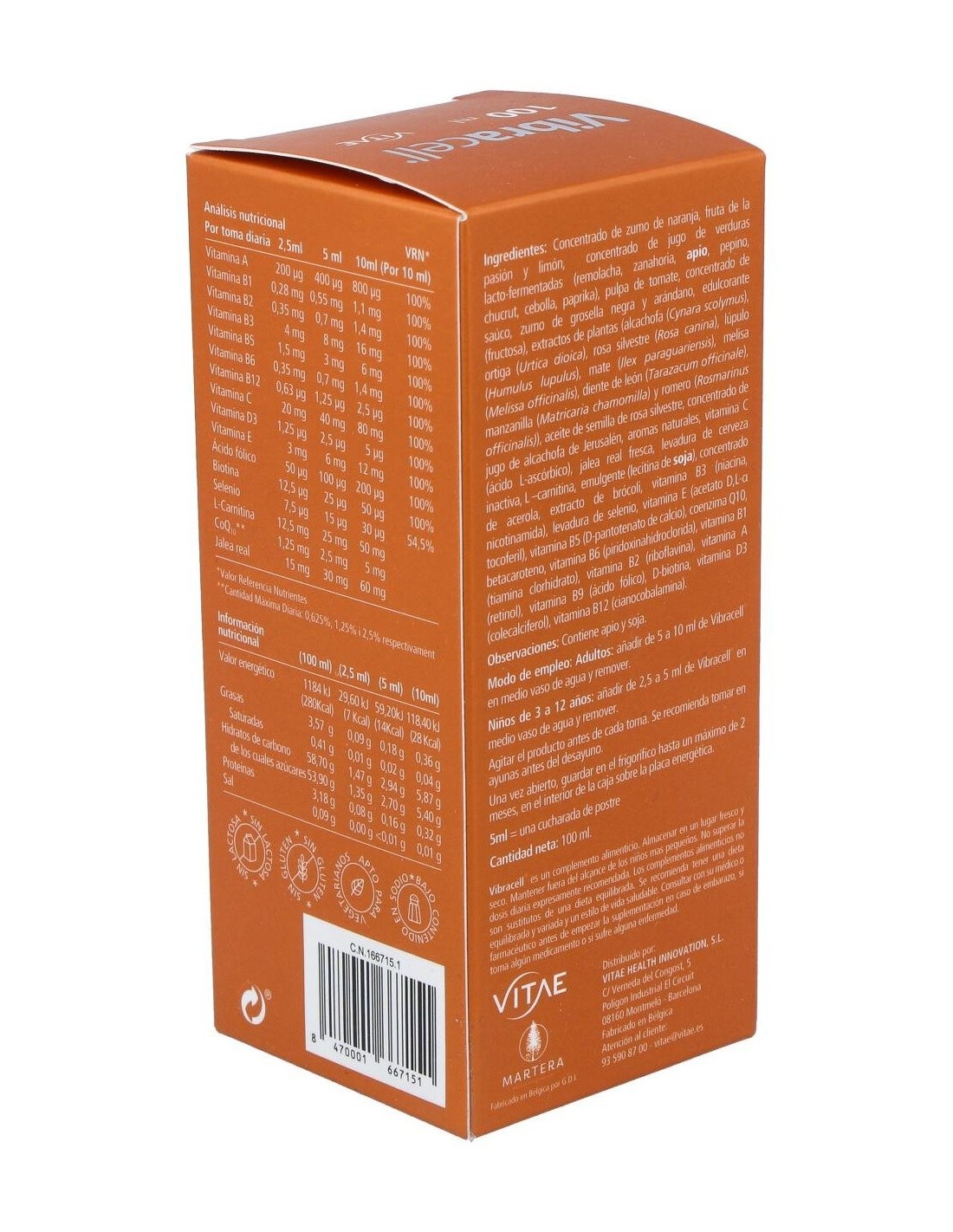 Vibracell® es un multivitamínico natural concentrado con más de 40 frutas y verduras naturales que complementa la dieta, proporciona energía y ayuda en la mejora del rendimiento físico y mental.