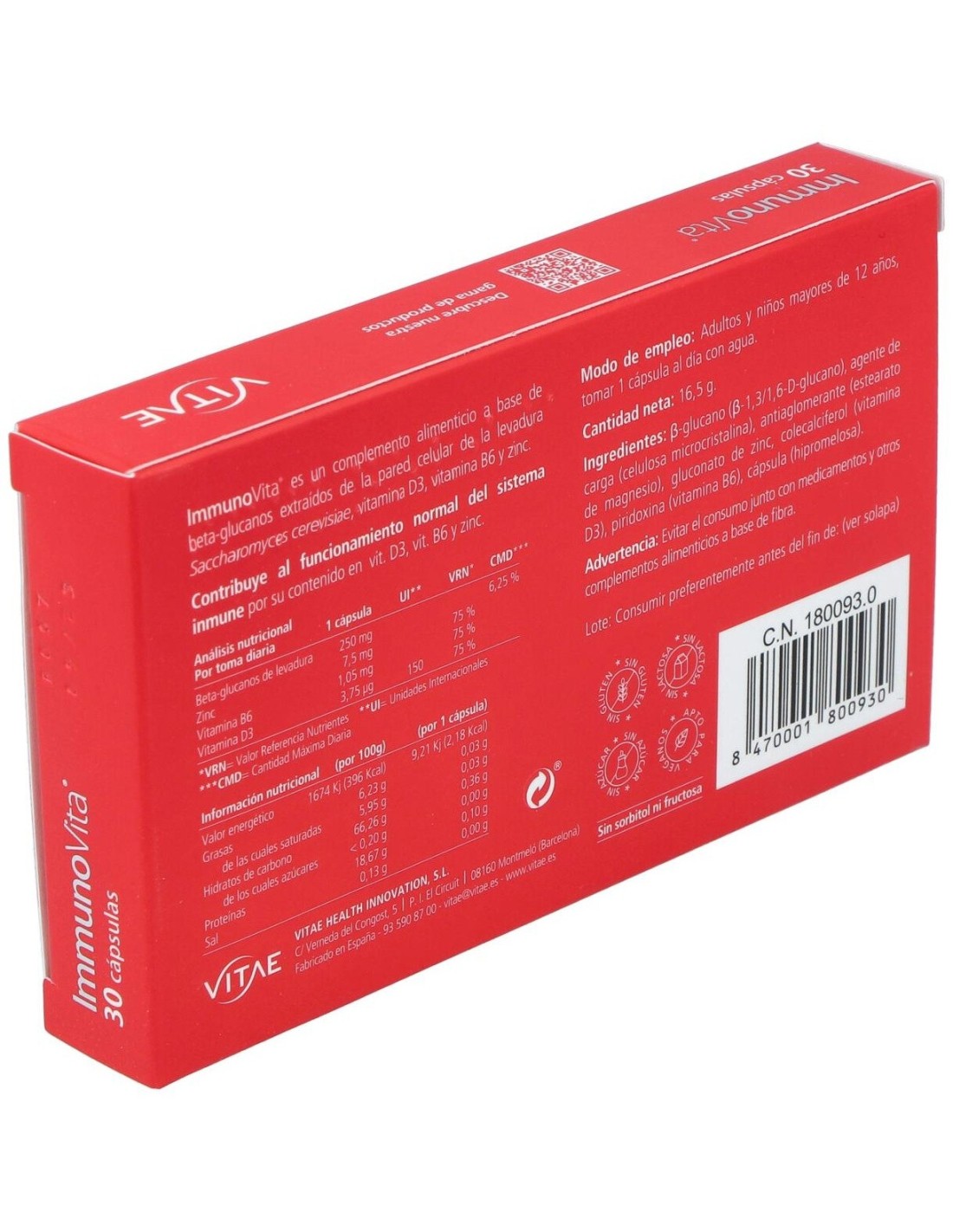 Complemento alimenticio a base de Wellmune WGP® (Beta-1,3/1,6-Glucano) de levadura y vitamina D3 la cual, contribuye al normal funcionamiento del sistema inmunitario. El sistema inmunitario (las defensas del organismo) está formado por diferentes órganos y sistemas del cuerpo que trabajan conjuntamente para evitar las agresiones externas. Composición por cápsula: