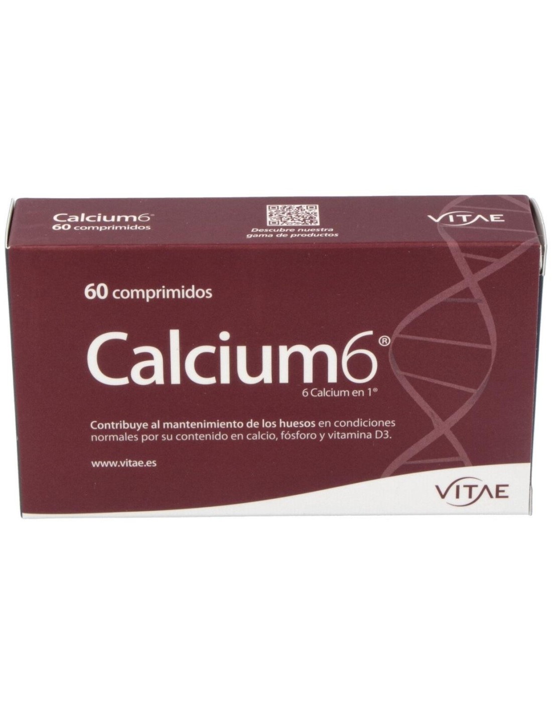 Vitae Calcium6 60 Comprimidos es un complemento alimenticio a base de sales de calcio, fósforo, vitamina D3 y extracto seco de bambú. Ayuda a que los huesos reciban un aporte de calcio y se mantengan sanos y fuertes. El calcio es necesario para el mantenimiento de los huesos en condiciones normales y contribuye al funcionamiento normal de los músculos. Por otro lado, la vitamina D contribuye a la absorción y uso del calcio y el fósforo, meintras que el fósforo y la vitamina D contribuyen al mantenimiento de los huesos en condiciones normales.