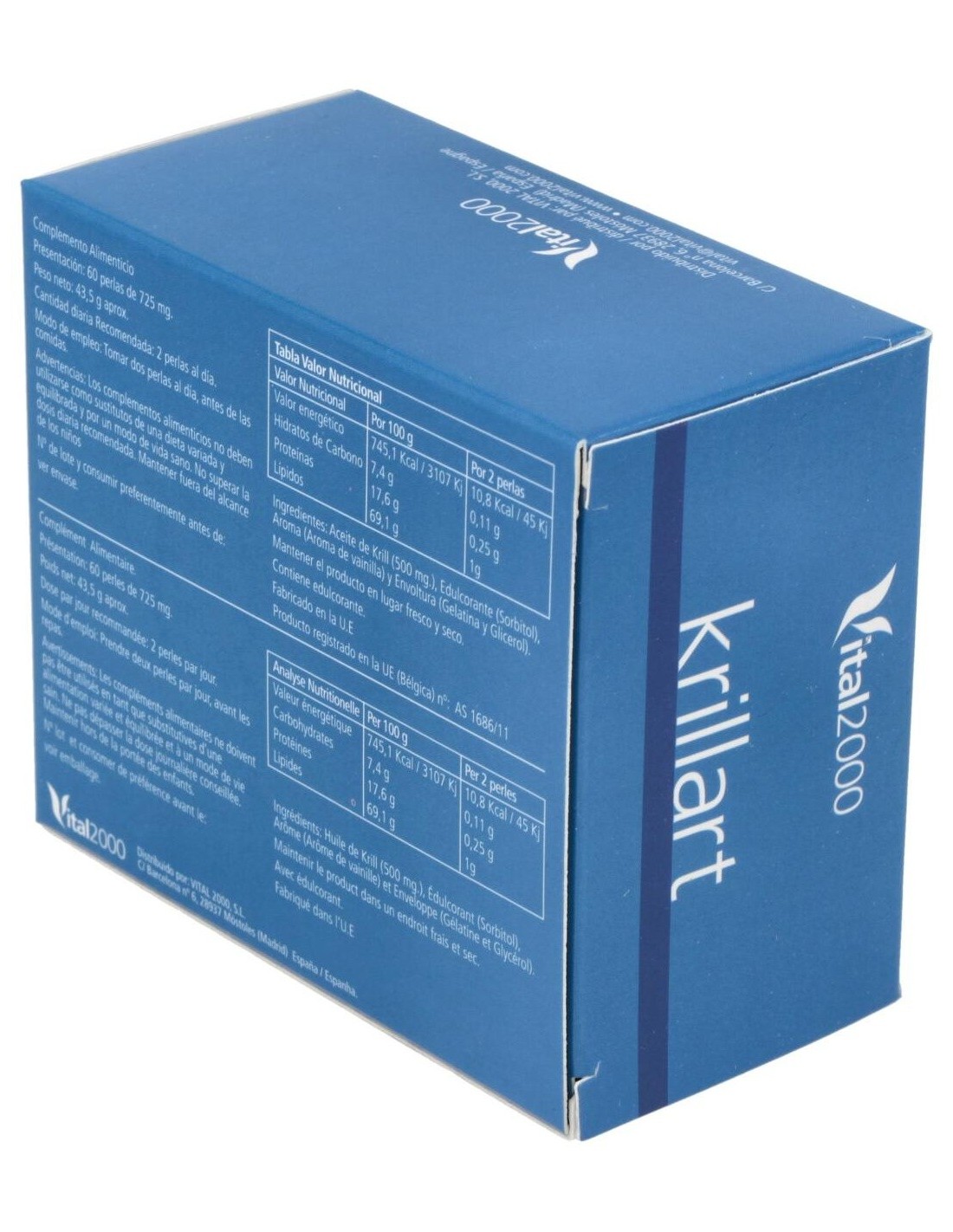 Ingredientes activos por perla:500 mg de aceite de krill (Euphausia superba).Modo de empleo:Tomar 1 perla dos veces al día.Presentación:Envase de 60 perlas.