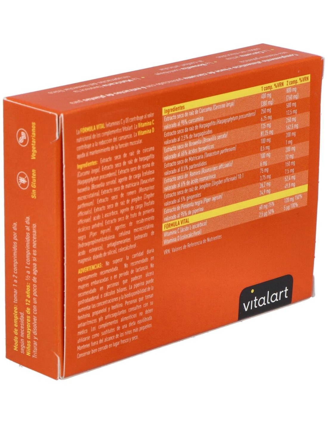 VITALART CÚRCUMA COMPLEX es un complemento coadyuvante en casos de dolor y molestias musculares y articulares. Actúa mediante una selección de extractos de plantas que modulan la respuesta inflamatoria a distintos niveles, tanto en procesos de inflamación aguda como crónica.