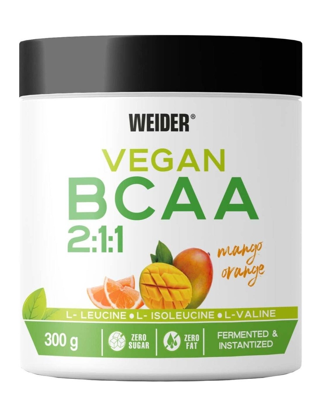 Aminoácidos ramificados aptos para veganos. WEIDER VEGAN BCAA mango-naranja 300gr.