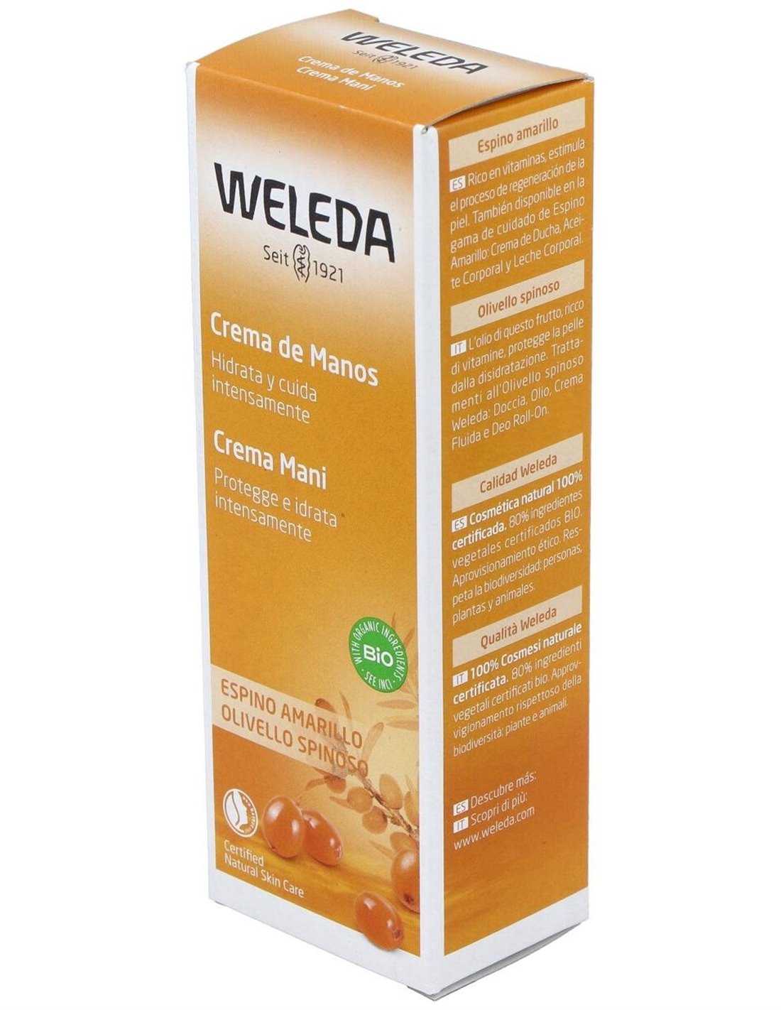 La Crema de Manos Hidratante de Espino Amarillo 50ml de Weleda es un cuidado para pieles secas que aporta hidratación y suavidad gracias a su fórmula con aceite de espino amarillo. Ideal para uso diario y piel sensible.