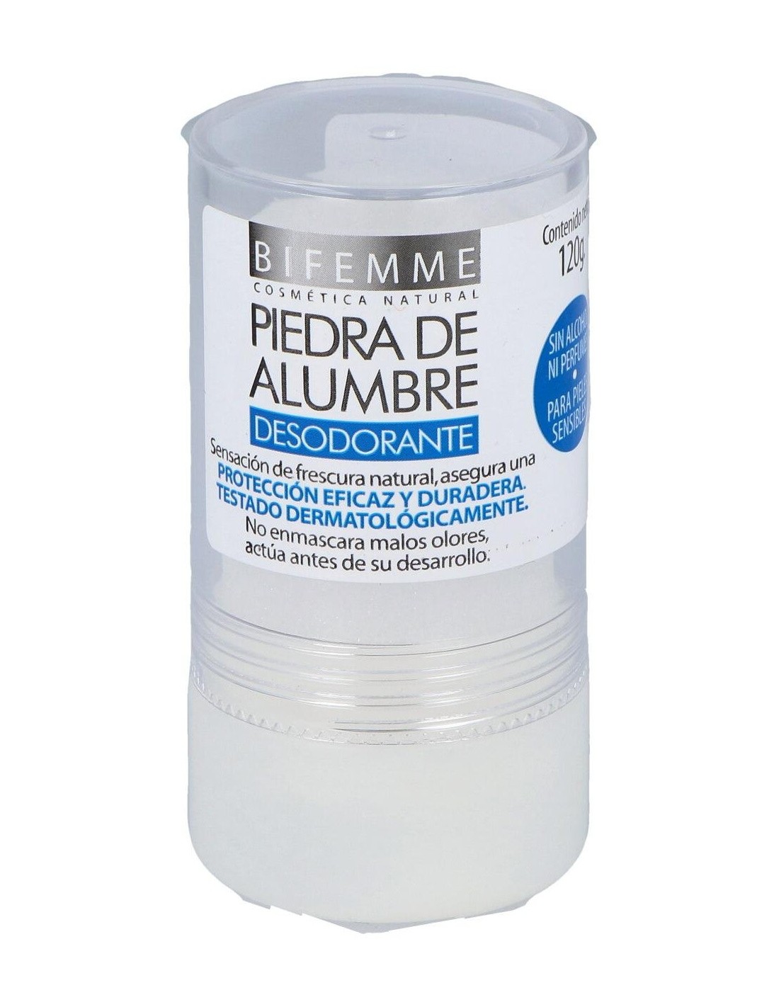 Ynsadiet Bifemme desodorante piedra alumbre es un remedio natural contra el exceso de sudoración y el mal olor. Forma una fina película invisible de microcristales de sal mineral, ofreciendo a tu piel una protección y frescura inmediata.