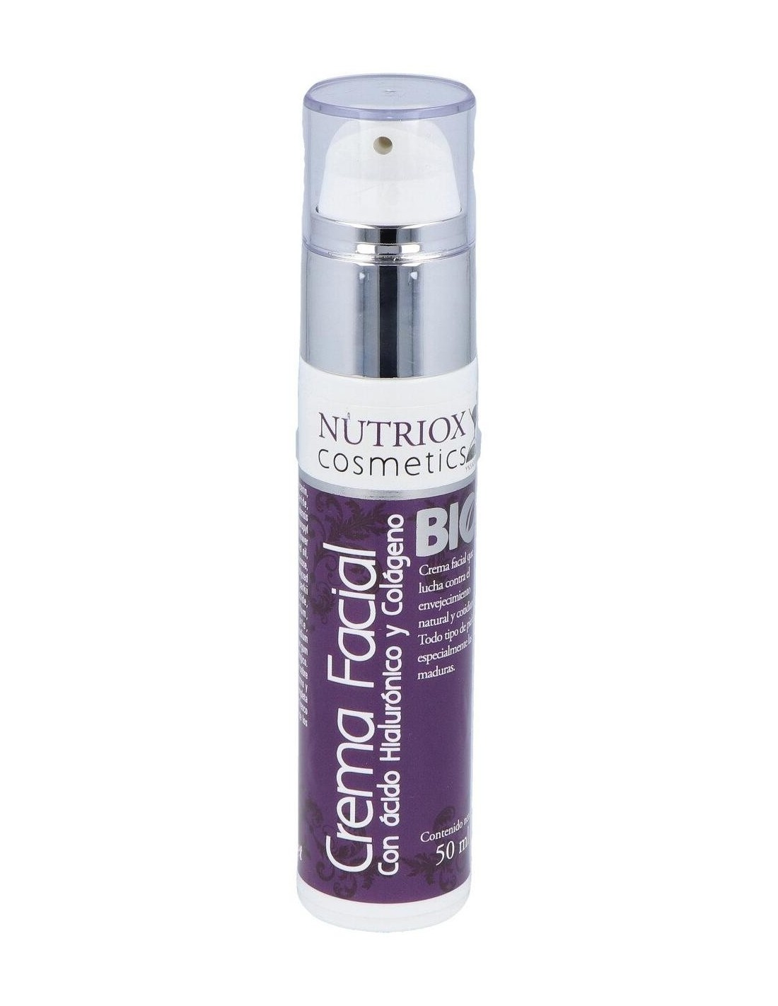 Nutriox Crema Facial Colágeno, Ácido Hialurónico Y Aloe 50ml crema hidratante y regeneradora que actúa reduciendo los signos de envejecimiento de la piel y la flacidez. Es ua crema eficaz contra el envejecimiento gracias a formulación de Rosa Canina, Rosa Damascena y Rosa Mosqueta.