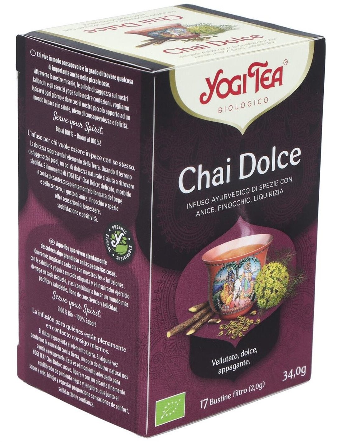 Yogi Tea Chai Dulce 17 X 2 G de Yogi Tea es una mezcla de infusiones diseñada para quienes buscan una experiencia de té aromática y equilibrada. Ideal para quienes disfrutan de sabores especiados con un toque dulce, ofrece una opción práctica para preparar en cualquier momento del día.