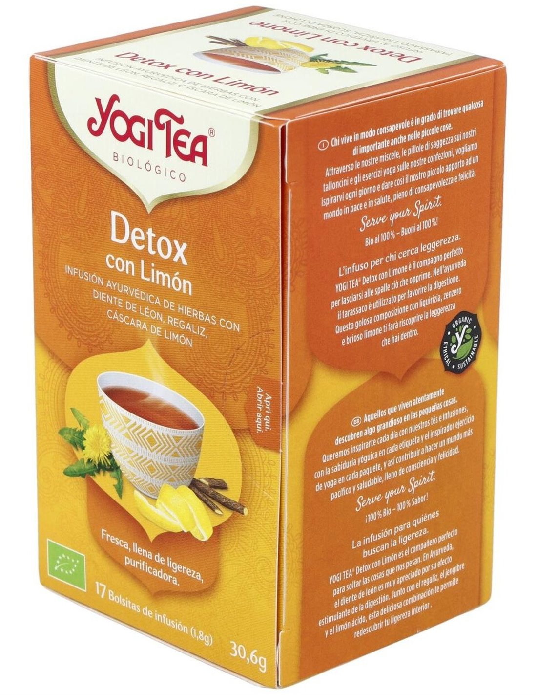 Yogi Tea Detox Con Limón 17 X 1,8 G de Yogi Tea es una infusión diseñada para quienes buscan una bebida natural con ingredientes seleccionados que aportan frescura y equilibrio. Ideal para personas interesadas en incorporar una opción de té con sabor a limón en su rutina diaria.