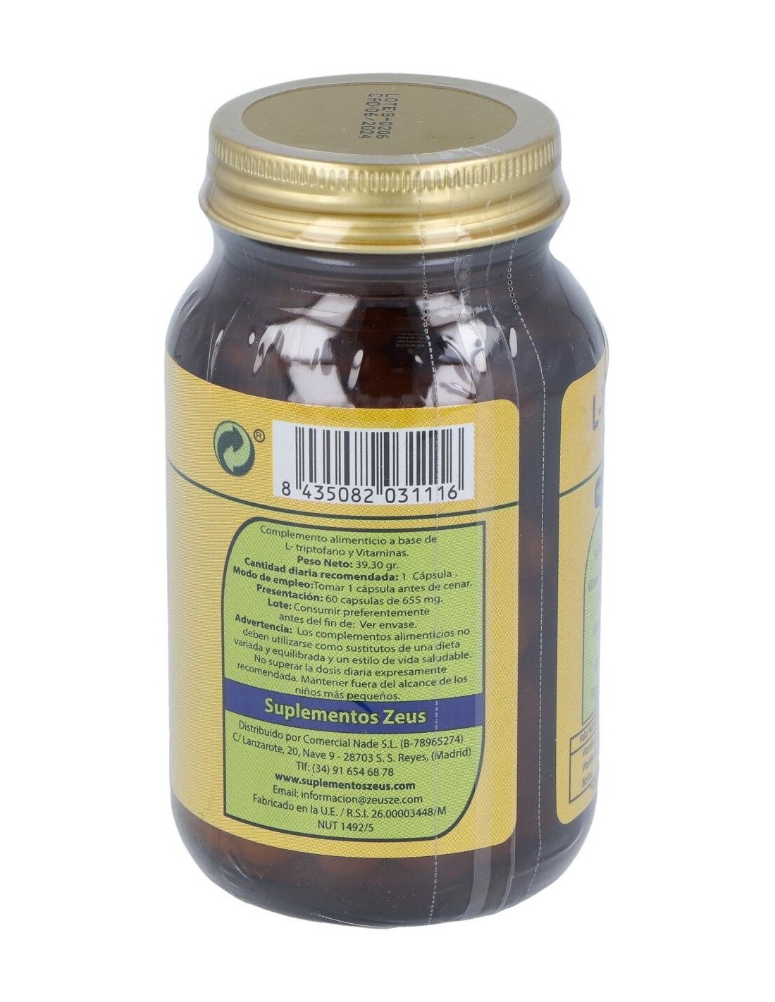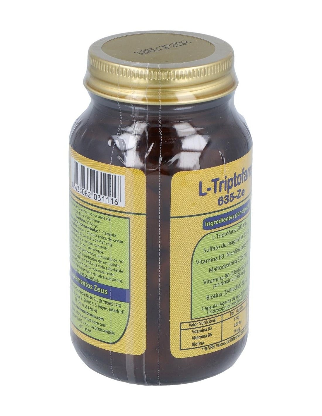 El L-Triptofano-Ze 60Cap. de Zeus es un suplemento nutricional para adultos que contribuye al bienestar emocional y al equilibrio del sueño mediante su fórmula con L-triptófano de alta pureza.