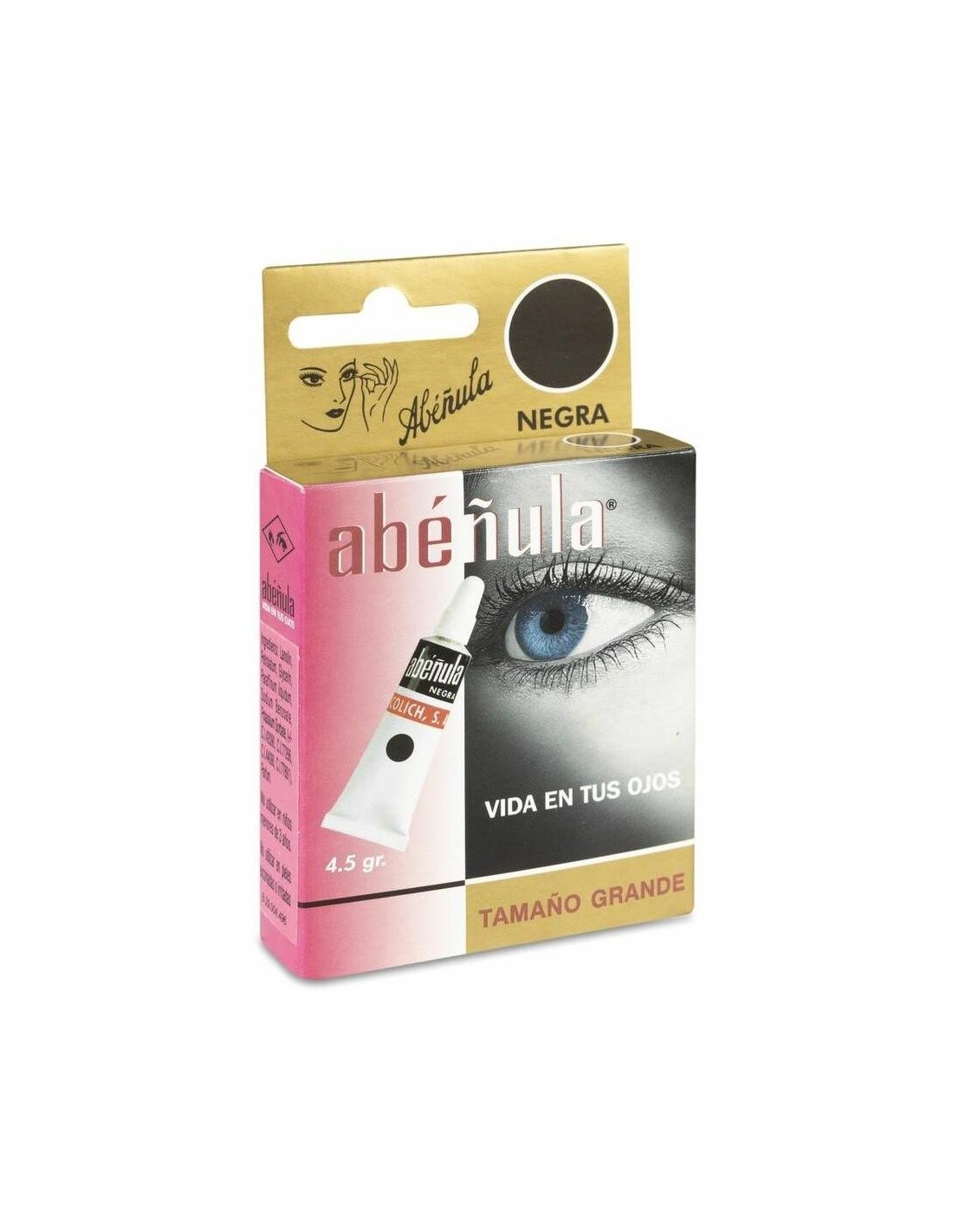 ABEÑULAAbéñula negra es un maquillaje para ojos con una base de la crema estrella Abéñula Blanca, conservando todos sus beneficios para ojos y pestañas. Da color a los ojos, consigue una mirada luminosa y atractiva, a la vez que nutre y fortalece las pestañas. Con su base de aceites minerales, proporciona un excelente efecto lubricante, dando a los ojos un extraordinario brillo, revitalizando las pestañas y evitando su caída.
