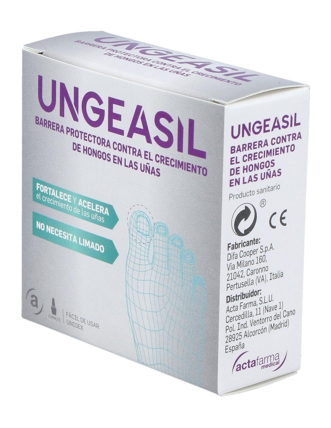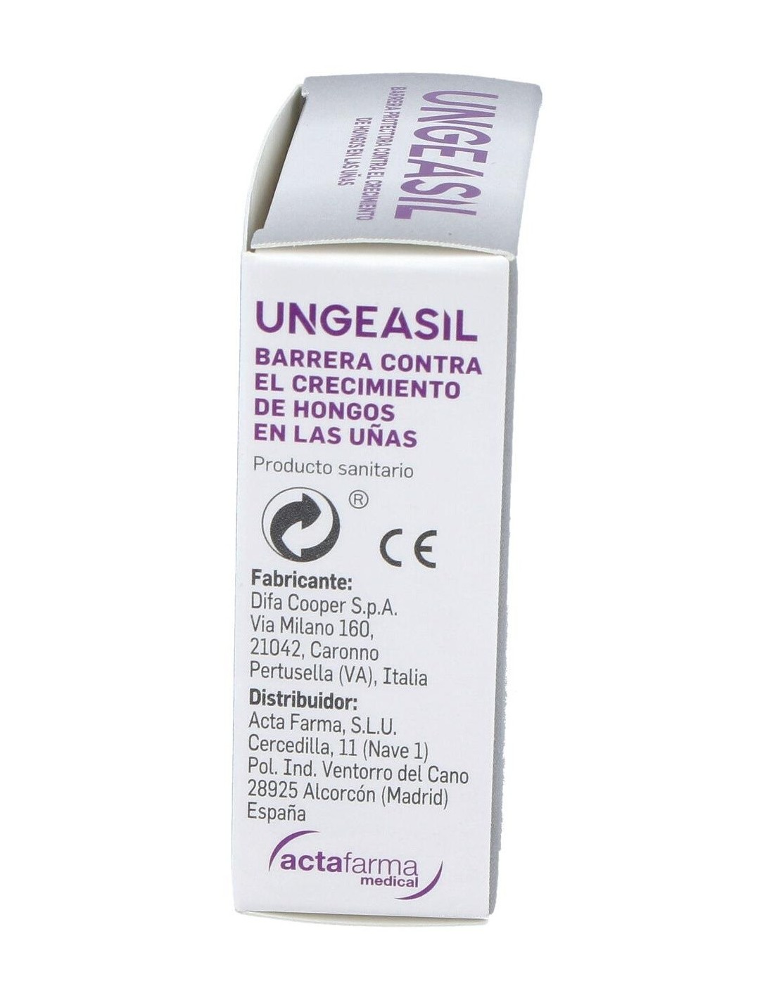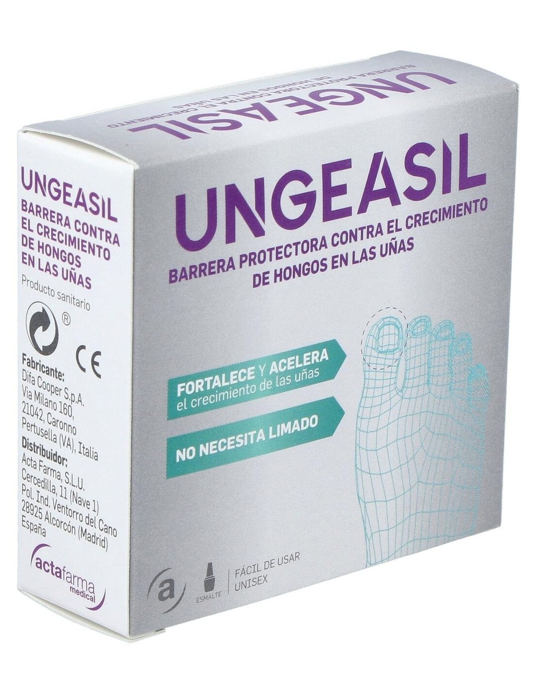 Ungeasil Esmalte 3.5 ml es un producto sanitario que actúa creando una barrera protectora y un ambiente desfavorable para el crecimiento de microorganismos en las uñas, como pueden ser los hongos.