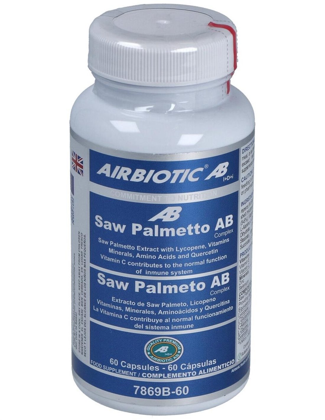 Airbiotic Saw Palmetto AB Complex 60 Cápsulas es un complemento elaborado a base de extracto concentrado de saw palmetto. Contribuye a la protección de las células frente al estrés oxidativo. Asimismo, gracias al zinc, favorece el mantenimiento de niveles normales de testosterona en sangre. Enriquecido con licopeno, l-alanina, l-glicina, L-glutamina y quercitina. Con vitamina C, E y selenio que contribuyen a la protección de las células frente al estrés oxidativo. Asimismo, el zinc contribuye al mantenimiento de niveles normales de testosterona en sangre.