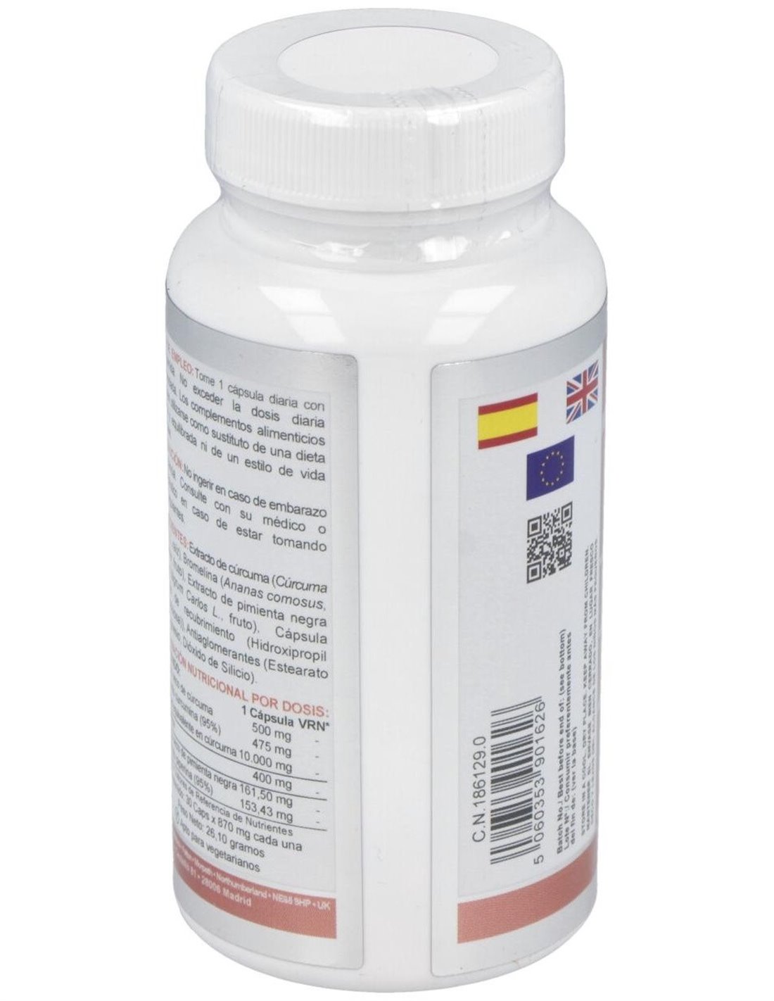 Cúrcuma (como 500 mg de extracto de raíz de cúrcuma)...... 10.000 mg