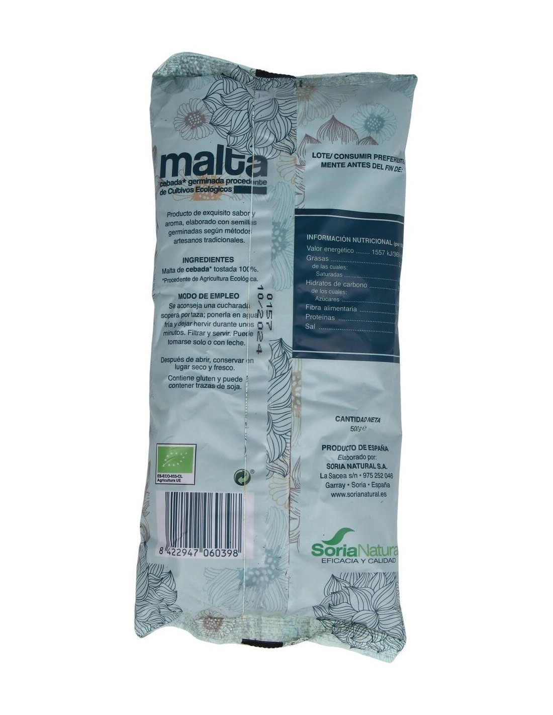 La Malta de Soria Natural es un producto en polvo a base de ingredientes de agricultura ecológica (maltade cebada y salvado de avena) con un alto poder estimulante y antidiarréico. Perfecto para tratar los problemas digestivos: estreñimiento leve o agudo.
