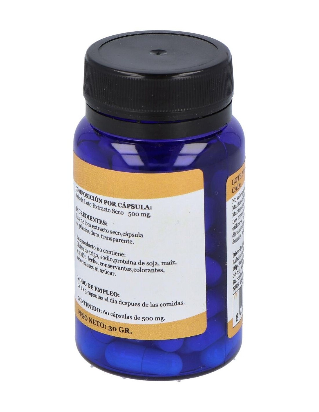 Complemento alimenticio en forma de cápsulas, elaborado a base de extracto seco de raíz de loto, que está especialmente indicado para ayudar a suavizar problemas respiratorios como la tos productiva, ablandando la mucosidad y facilitando su expulsión.