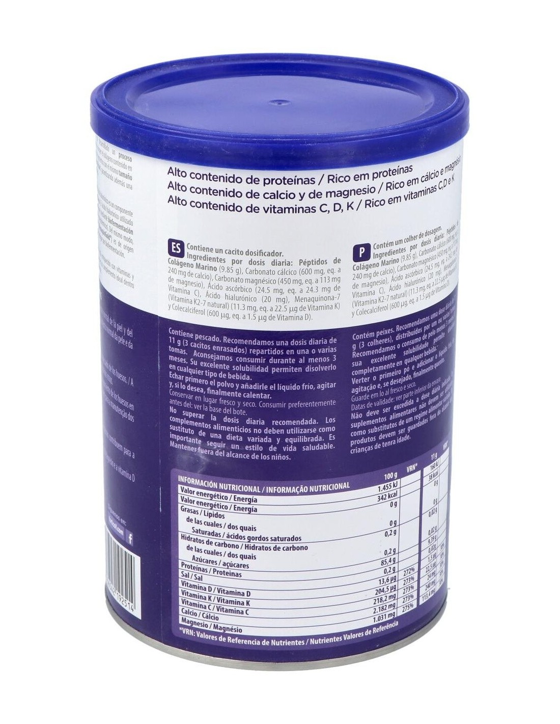 PÉPTIDOS DE COLÁGENO MARINO (NATICOL(R)) (9.85 G), CARBONATO CÁLCICO (600 MG, EQ. A 240 MG DE CALCIO), CARBONATO MAGNÉSICO (450 MG, EQ. A 113 MG DE MAGNESIO), ÁCIDO ASCÓRBICO (24.5 MG, EQ. A 24.3 MG DE VITAMINA C), ÁCIDO HIALURÓNICO (20 MG), MENAQUINONA-7 (VITAMINA K2-7 NATURAL-MENAQUINGOLD(TM)) (11.3 MG, EQ. A 22.5 MCG DE VITAMINA K) Y COLECALCIFEROL (600 MCG, EQ. A 1.5 MCG DE VITAMINA D). CONTIENE TRAZAS DE PESCADO