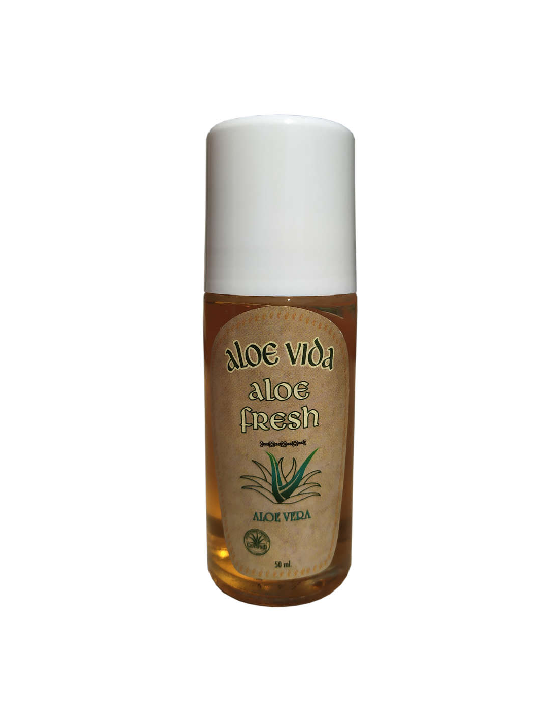 Aloe Fresh 50 ml de ALOE VIDA es un gel refrescante y natural elaborado con aloe vera puro. Ideal para hidratar, calmar y revitalizar la piel, ayuda a aliviar irritaciones, quemaduras leves y enrojecimientos. Su fórmula ligera se absorbe rápidamente, dejando una sensación fresca y suave. Perfecto para el cuidado diario, aporta frescura y bienestar en cualquier momento del día. Lleva contigo la pureza y beneficios del aloe vera con ALOE VIDA.