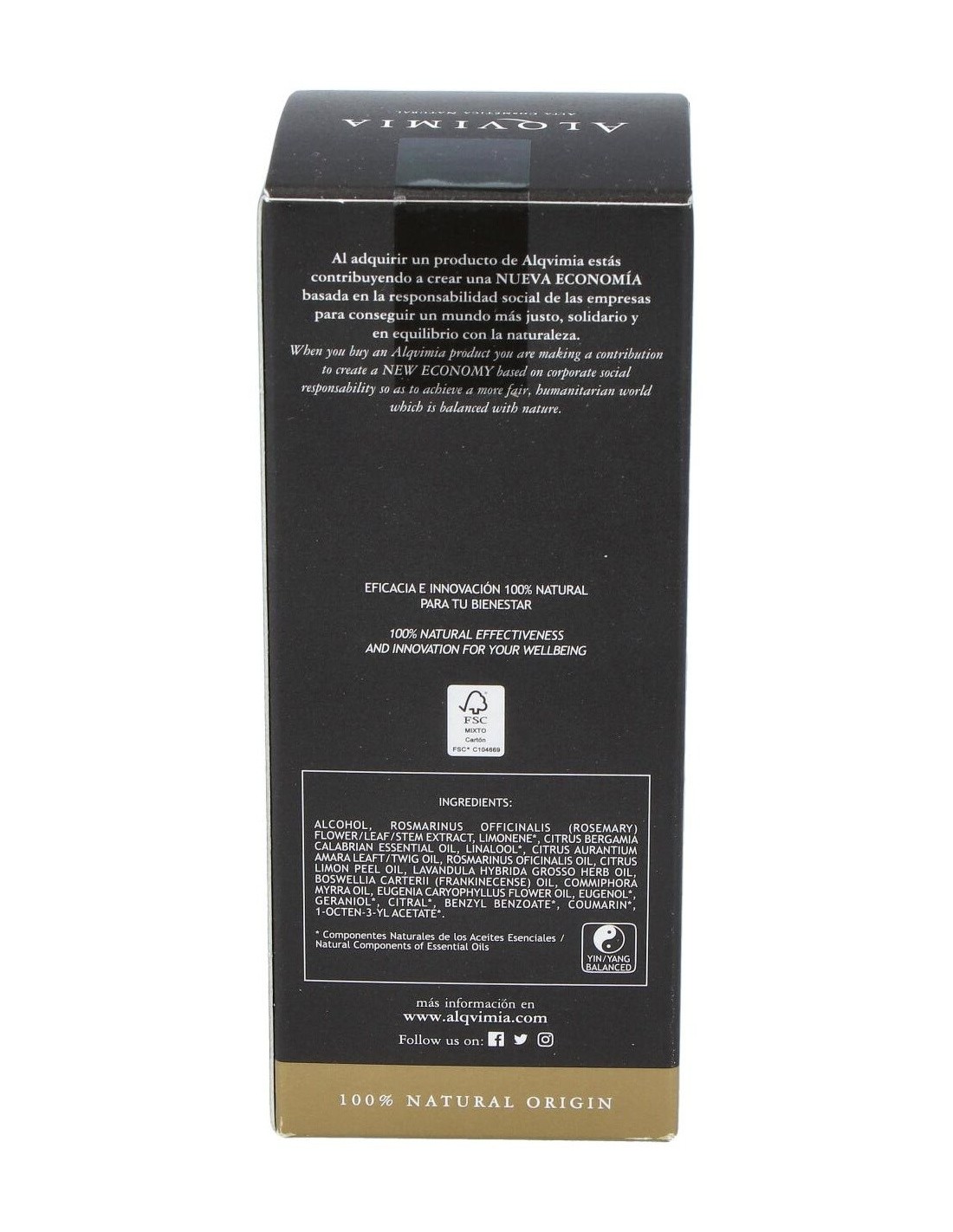 Alcohol denat, rosmarinus officinalis (rosemary) flower/leaf/stem extract, citrus aurantium bergamia (bergamot) fruit oil, limonene*, citrus medica limonum (lemon) peel oil, citrus aurantium amara leaf/twig oil, rosmarinus officinalis (rosemary) leaf oil, lavandula hybrida oil, boswellia carterii oil, eugenia caryophyllus (clove) leaf oil, commiphora myrrha resin, linalool*, geraniol*, citral*, eugenol*, benzyl benzoate*, coumarin*