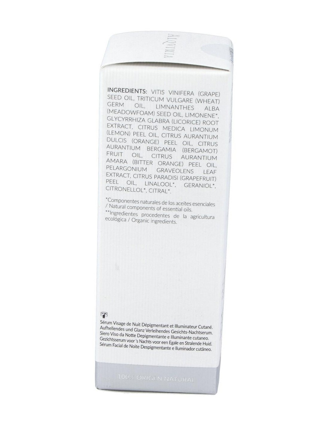 Sérum con efecto nutritivo e hidratante que suaviza la piel devolviéndole su luminosidad natural. Ideal para uniformizar el tono facial en pieles que han visto alteradas su pigmentación. La elevada presencia de antioxidantes naturales en la fórmula también contribuye a la prevención del envejecimiento prematuro. Apto para todo tipo de pieles.
