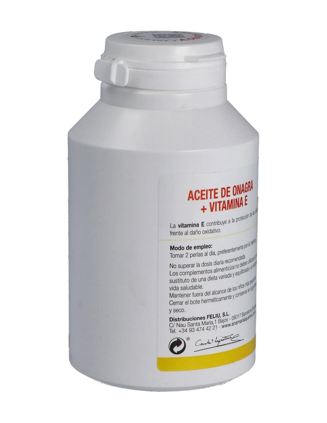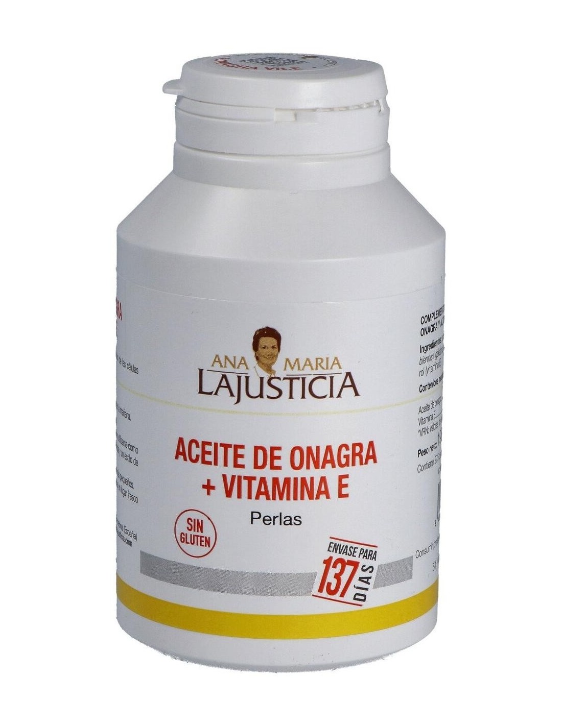 Ana Maria Lajusticia Aceite De Onagra + Vitamina E 275 Perlas es un complemento alimenticio rico en vitamina E y ácidos grasos poliinsaturados, con aceite de Onagra. La vitamina E colabora con la protección de las células frente al daño oxidativo.