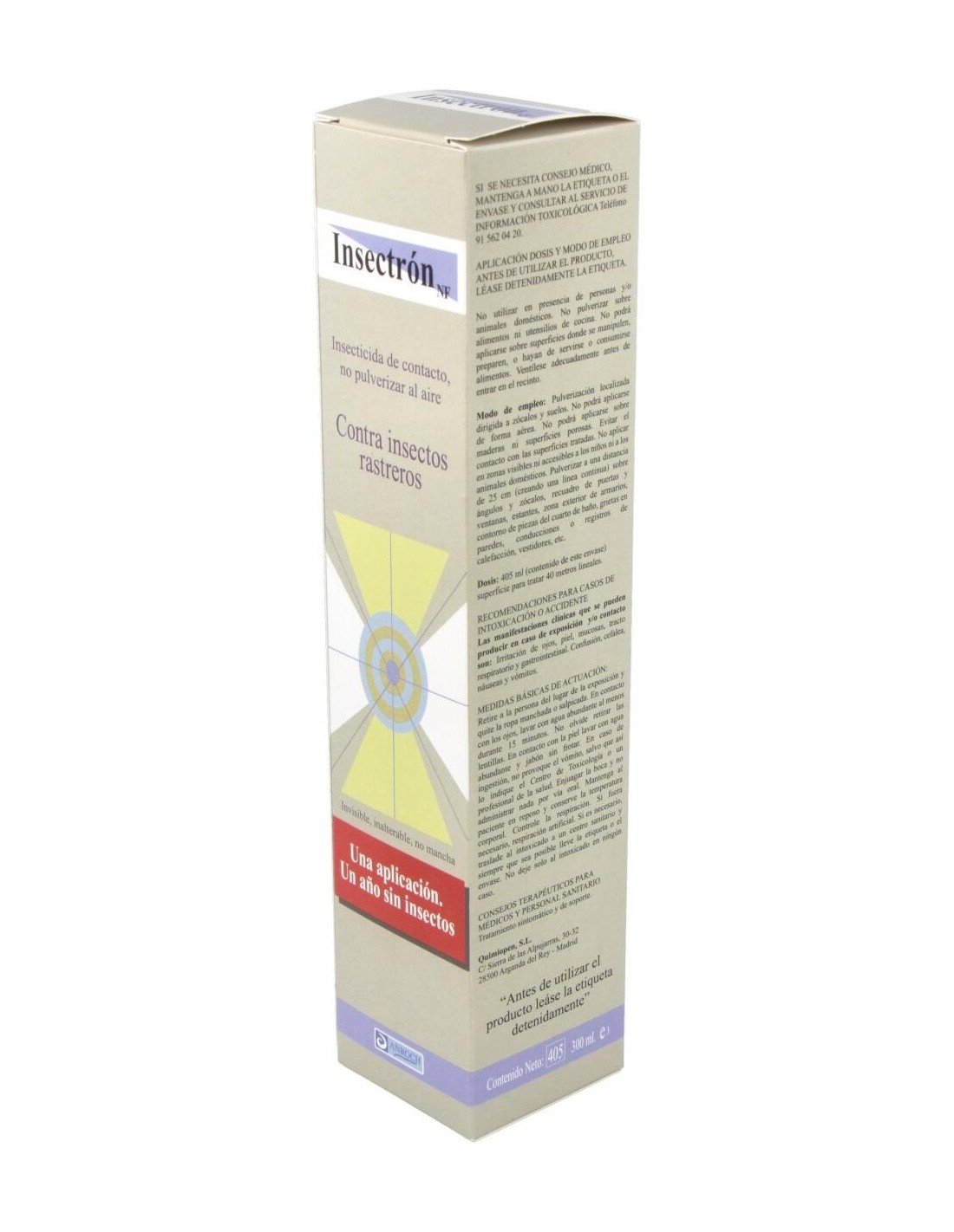 Laca insecticida de uso doméstico contra insectos rastreros. Su acción es instantánea y perdurable durante un año.