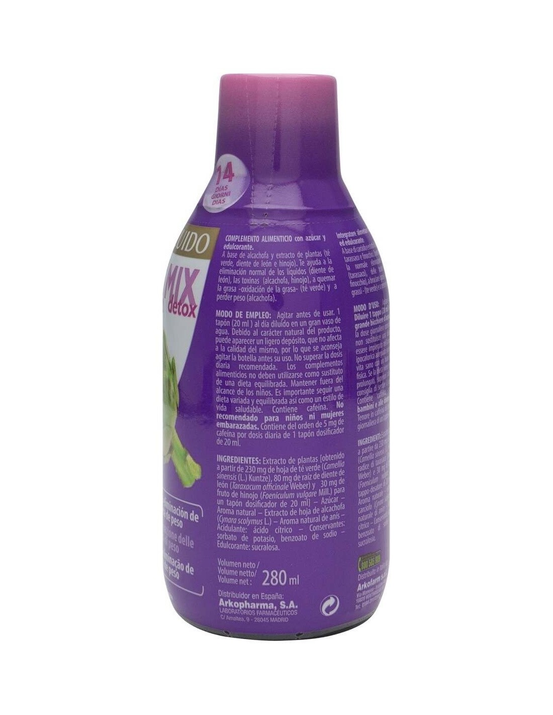 A base extractos vegetales que contribuyen a la eliminación normal de los líquidos (diente de león), las toxinas (alcachofa, hinojo), a quemar la grasa -oxidación de la grasa- (té verde) y a perder peso (alcachofa). Programa de 14 días.