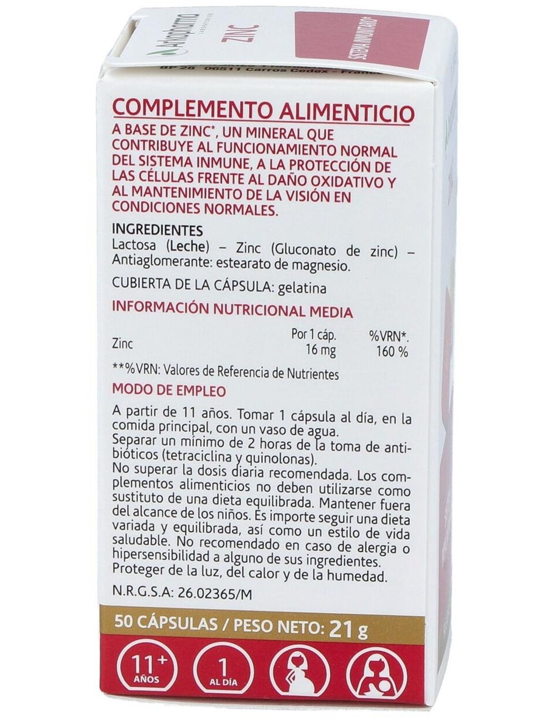 Lactosa, gluconato de zinc (trigo), gelatina (cápsula), antiaglomerante: estearato de magnesio. Cada cápsula contiene 16 miligramos de zinc.
