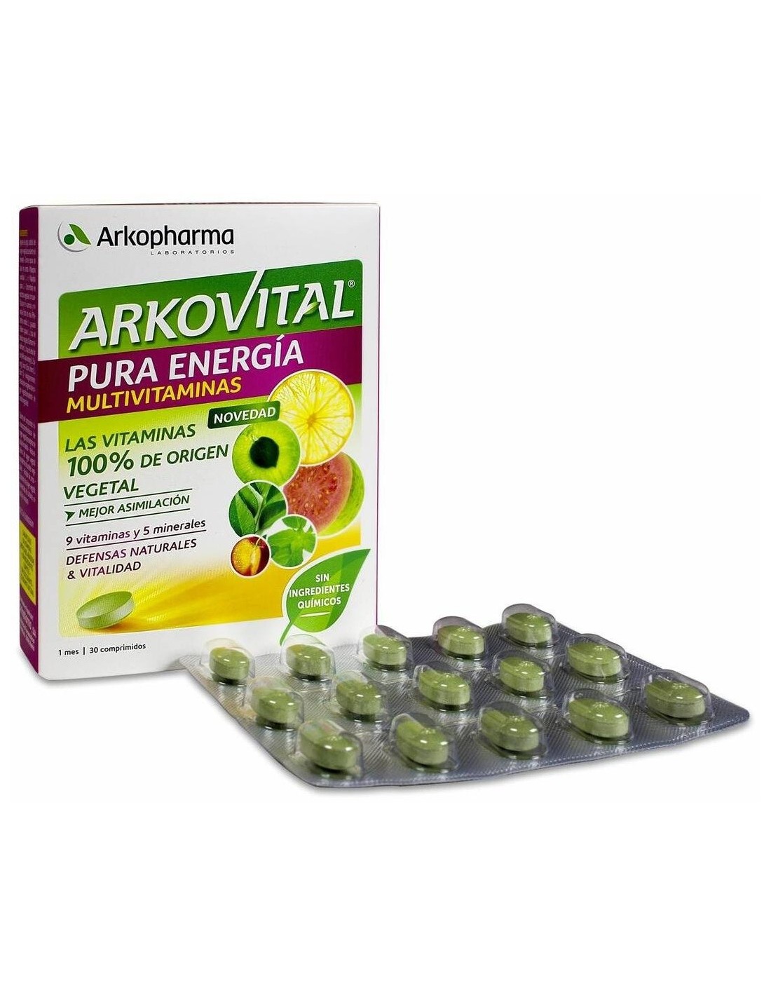 Indicação: Combinação de vitaminas e minerais extraídos exclusivamente de frutas e plantas, de origem 100% vegetal, sem componentes químicos e sem adição de vitaminas artificiais. O corpo assimila-os melhor, pelo que proporcionam uma nova sensação de vitalidade. Sem ingredientes químicos. Precauções: O consumo excessivo pode ter efeitos laxativos. Os suplementos alimentares não devem ser utilizados como substitutos de uma dieta equilibrada ou de um estilo de vida saudável. Não exceda a dose recomendada. Mantenha fora do alcance de crianças pequenas. Composição: Agente de volume: sorbitol (de cereais) - Suco de acerola em pó (Malpighia punicifolia L. ou Malpighia glabra L.) - Concentrado de extratos vegetais titulados em vitaminas e minerais [amla (Phyllanthus emblica L.), goiaba (Psidium guajava L.), folha de manjericão (Ocimum tenuiflorum L.), folha de caril (Murraya koenigii (L.) Spreng.), limão (Citrus limon (L.) Burm. f.) ] - Antiaglomerante: estearato de magnésio (a partir de óleos vegetais). Revestimento: Hidroxipropilmetilcelulose, hidroxipropilcelulose (de polpa de celulose) - Ácido esteárico (de óleos vegetais) - Amido de arroz. Cores de origem vegetal: concentrado de cártamo, espirulina, maçã. Para 1 comprimido: Suco de acerola em pó 248 mg Concentrado de extratos vegetais titulados em vitaminas e minerais 220 mg Vitamina B1...0,65 mg Vitamina B8...28 µg Vitamina B2...0,83 mg Vitamina B3. ...5,5 mg Cromo.........32 mcg Vitamina B5..5.5 mg Vitamina B6....4.2 mg Vitamina B9...110 µg Vitamina C.. ...72 mg Ferro.... ........5 mg Selênio........19 µg Zinco ............2,1 mg Vitamina E .....15 mg Manganês.. ..0,5 mg Dosagem: Para adultos e crianças com mais de 6 anos: Tomar 1 comprimido por dia, engolido com um copo grande de água ou suco de laranja no café da manhã. Seu uso é recomendado por um mês, embora possa ser tomado várias vezes ao ano, principalmente nas mudanças sazonais. Armazenar em local protegido da luz, calor e umidade.