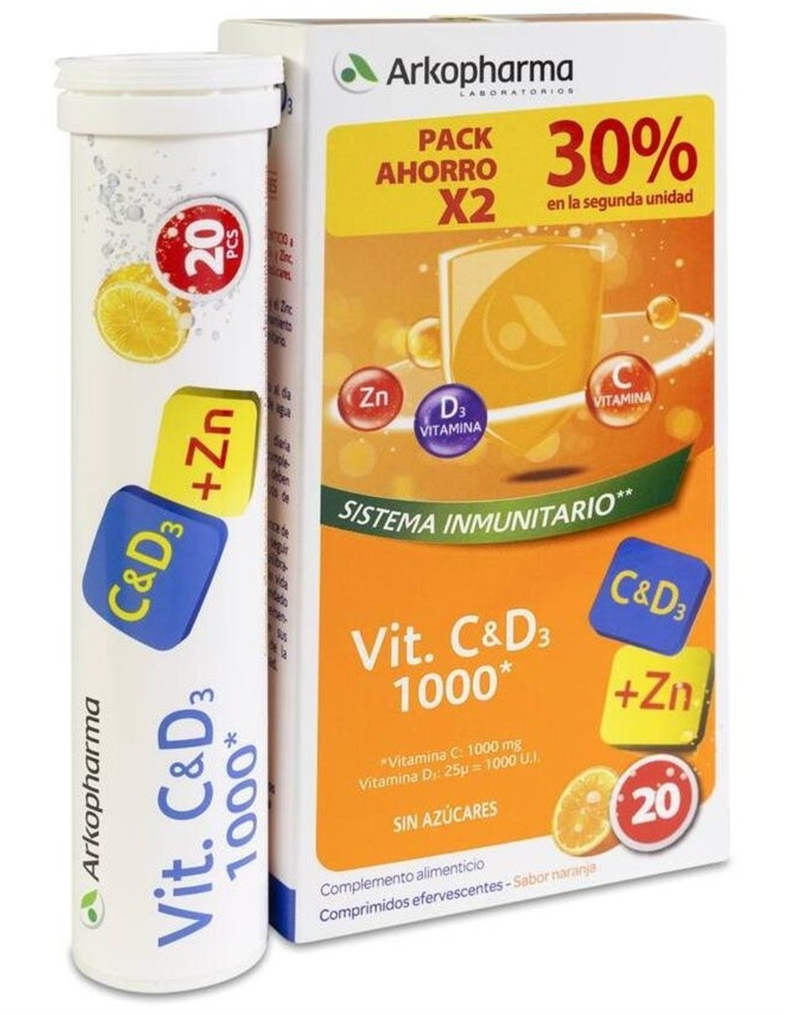 ARKOPHARMAFórmula con asociación de vitaminas y zinc que contribuye al funcionamiento normal del sistema inmunitario. Comprimidos efervescentes sabor a naranja, con edulcorantes y sin azúcares.