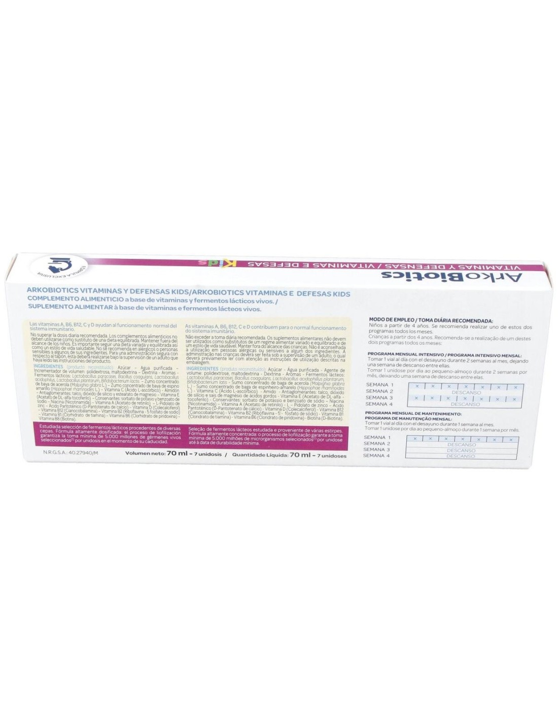 A base de 5 probióticos (fermentos lácticos) que actúan en sinergia con vitaminas que ayudan al normal funcionamiento del sistema inmunitario. Formato para 7 días.