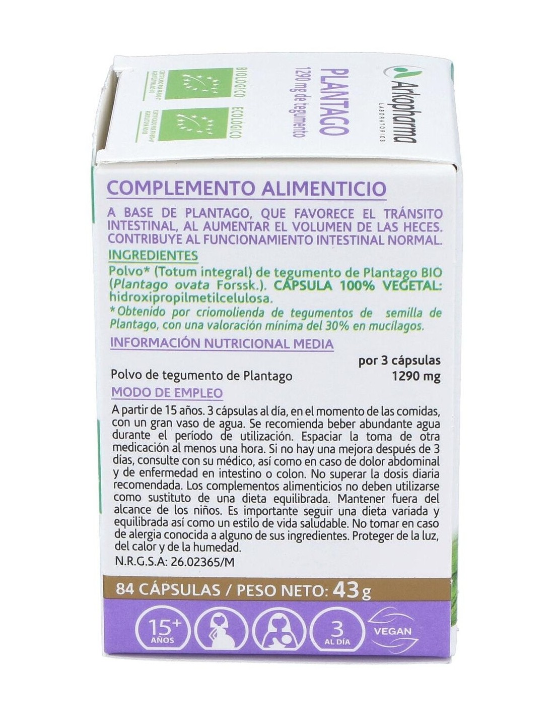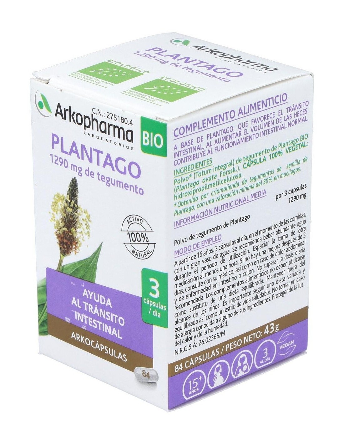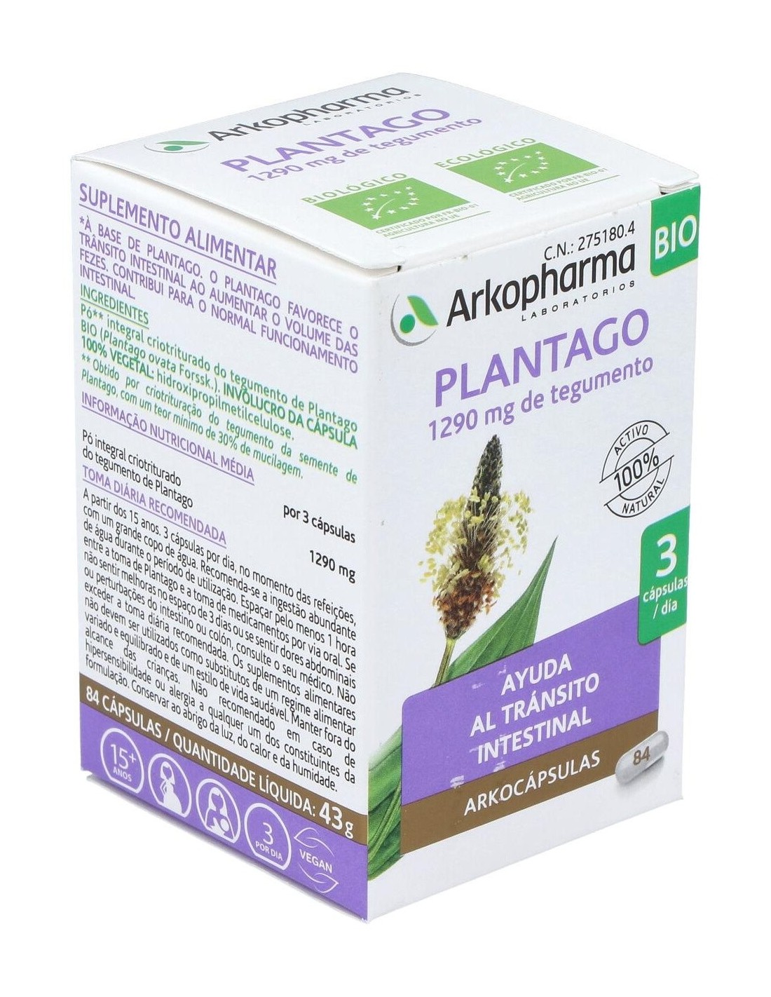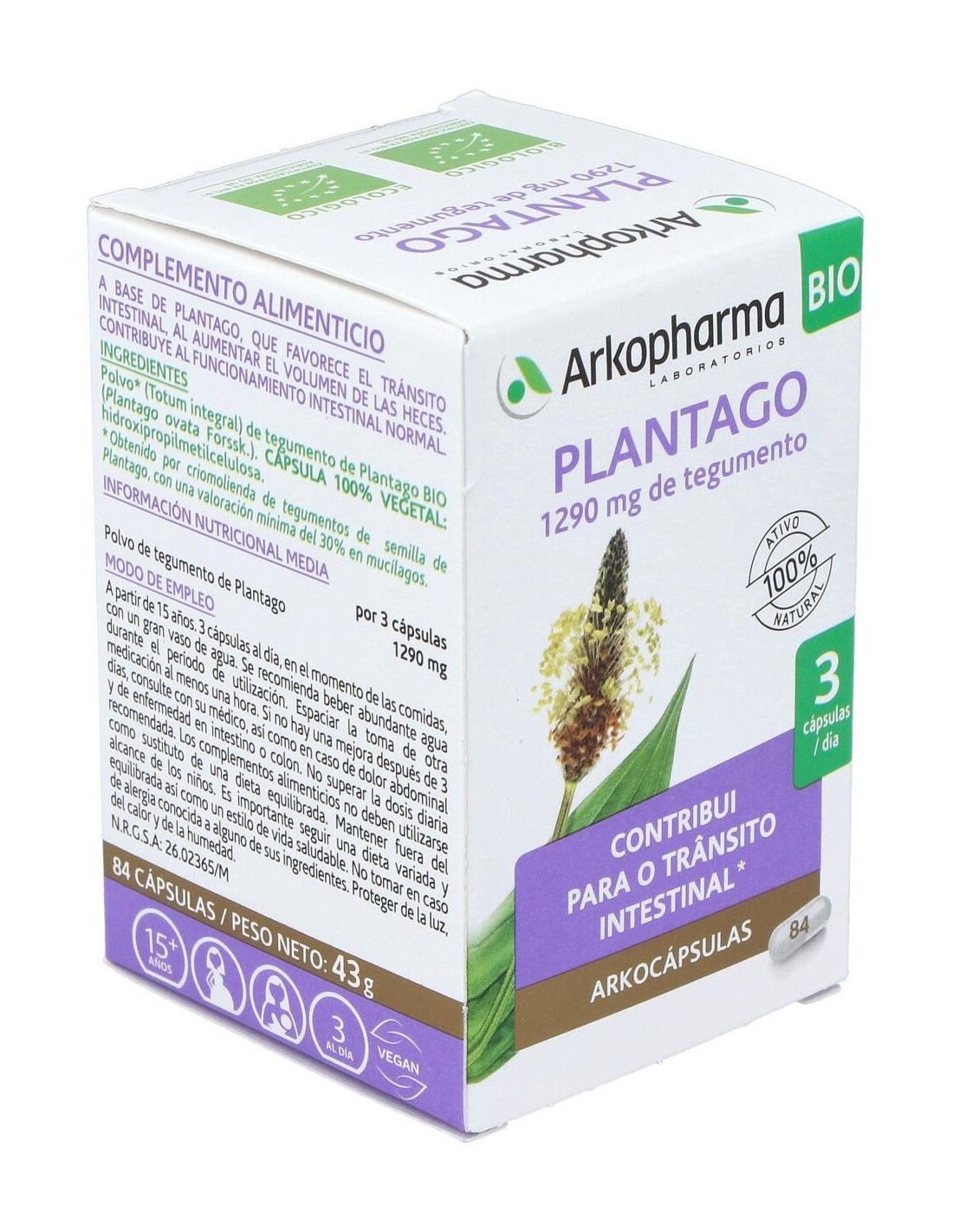 Plantago 84Arkocapsulas. Bio de Arkopharma