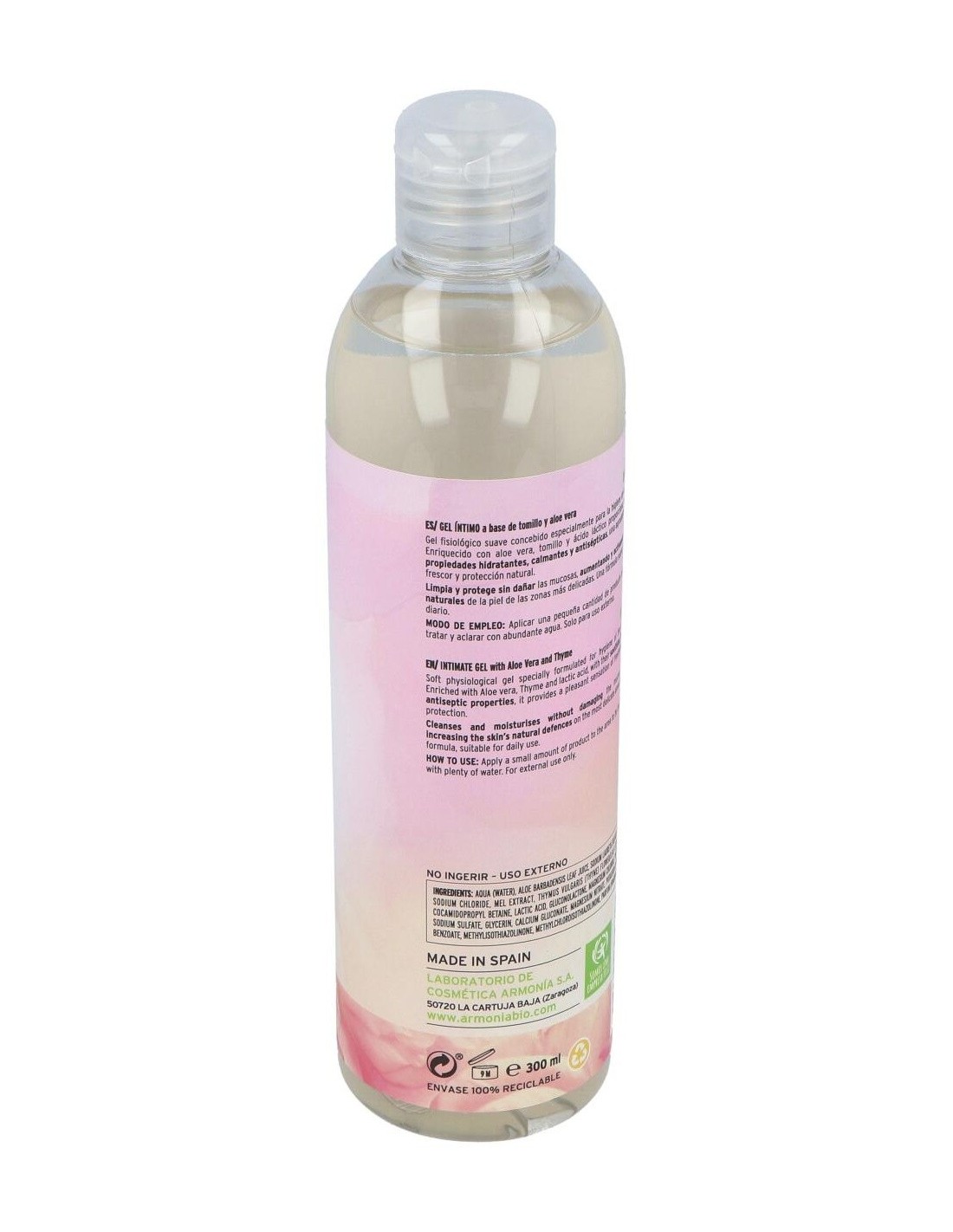 El gel íntimo con tomillo y aloe vera de Armonía es un tratamiento suave que nutre e hidrata profundamente la zona íntima de la mujer. Un producto antiséptico, con propiedades calmantes e hidratantes, muy beneficioso para limpiar la zona íntima sin dañar las mucosas. Enriquecido con una fórmula suave a base de: