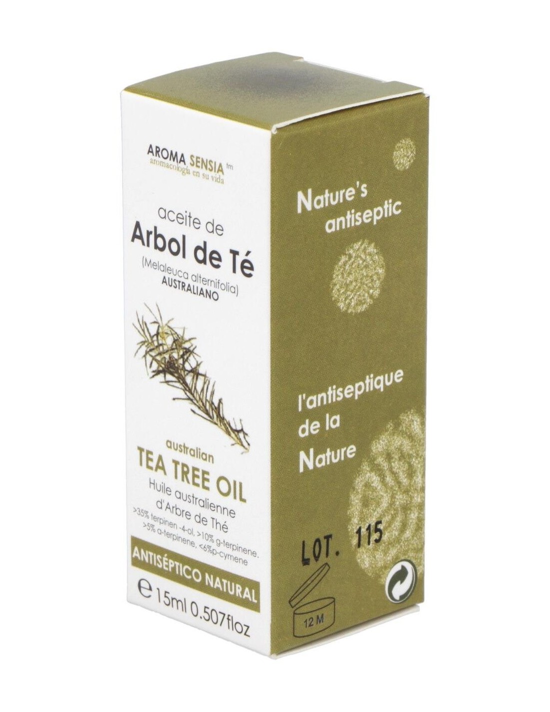"DescripciónEl Aceite de Árbol de Té Australiano de Aromasensia tiene su aplicación como antiséptico para el cuidado de la piel y es muy útil para poder tratar hongos y levaduras dermatofíticos y bacterias. También se puede aplicar el Aceite de Árbol de Té Australiano sobre pequeñas inflamaciones (como picaduras de insectos) y sobre parásitos externos como las garrapatas.