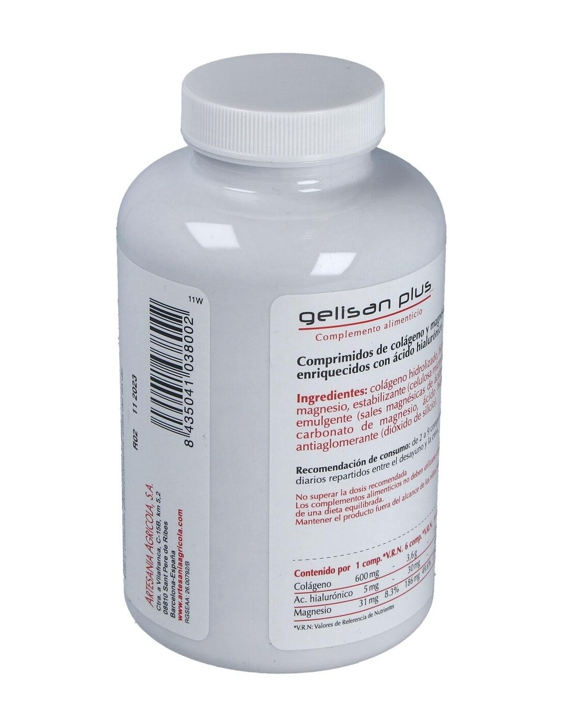 Comprimidos con una fórmula a base de colágeno, magnesio y enriquecido con ácido hialurónico que es ideal para las personas que tienen problemas con dolores articulares o enfermedades degenerativas como reuma, artritis o artrosis. El colágeno, considerado como la proteína antienvejicimiento, aporta a los tejidos nutrición y protección. El magnesio es indispensable para que el cuerpo asimile el calcio y las vitaminas B y C. El ácido hialurónico abarca un 90% de polisacáridos del tipo glycosaminglicanos (GAGs) y tiene la característica de retener el agua que nuestro organismo necesita para lubricar los cartílagos y ligamentos.