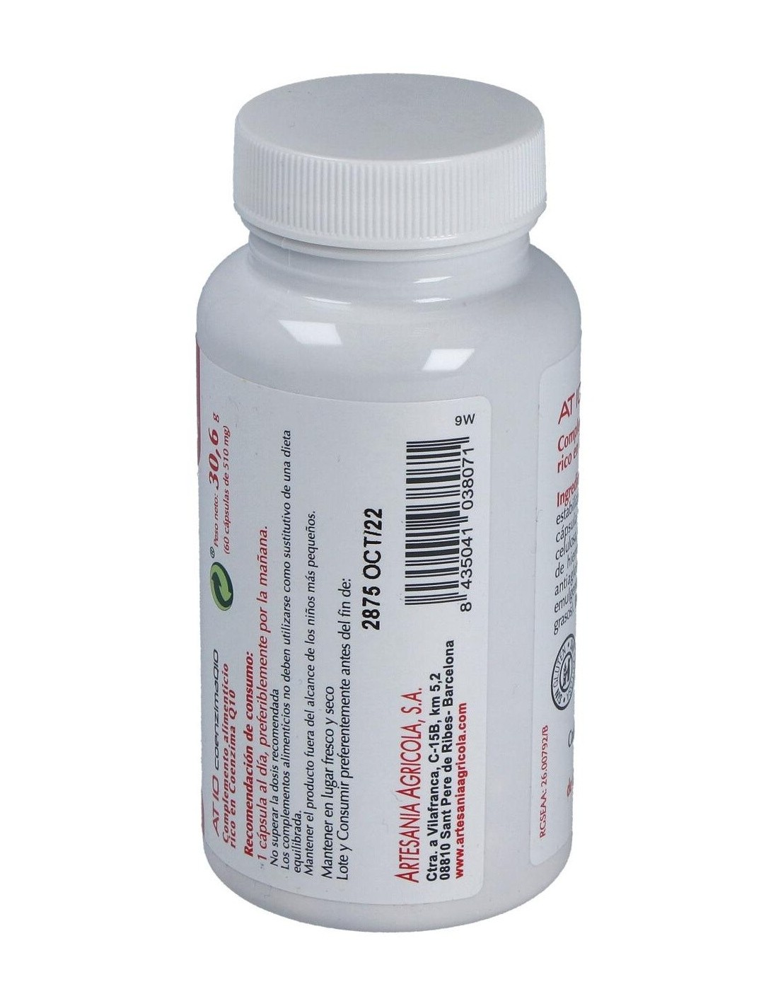 ARTESANIACápsulas elaboradas a base de coenzima Q10, conocida por proporcionar energía a las células del organismo así como por sus propiedades antioxidantes. Además favorece la eliminación de grasa por lo que su ingesta es muy beneficiosa en caso de sufrir de hígado graso y mejora la salud cardiovascular.